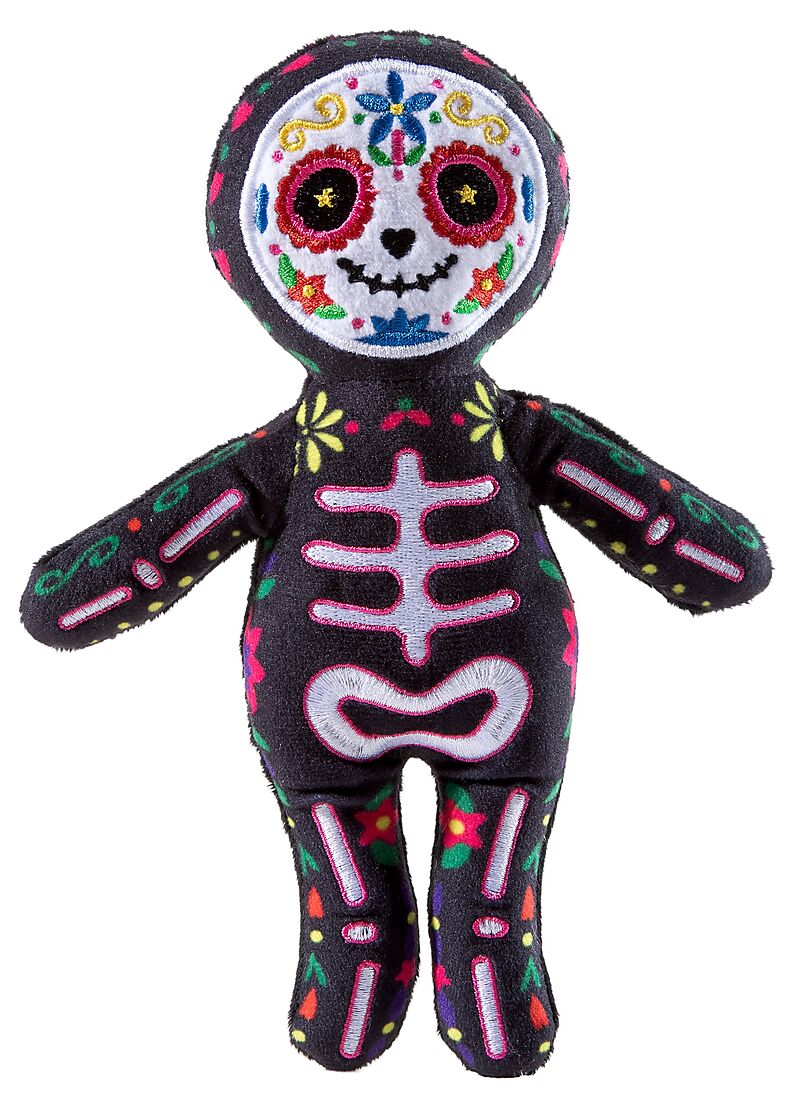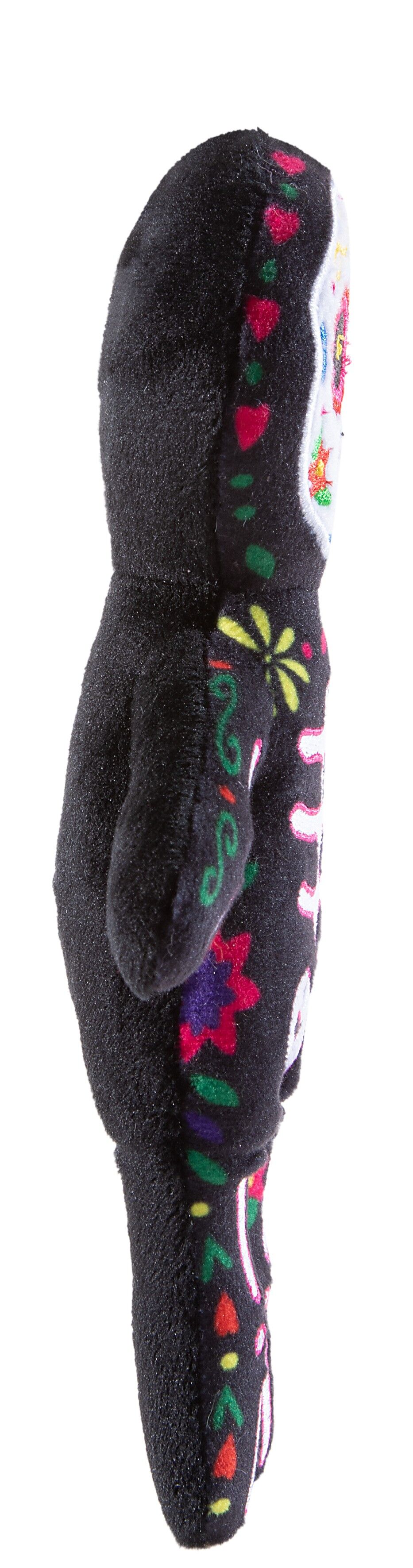 Die Halloween Puppe Hijo Muertos ist eine einzigartige Grusel-Figur im Tag-der-Toten-Stil. Mit einer Größe von 21 cm, dem aufgestickten Skelett, einem kunstvoll verzierten Gesicht und dem schwarzen Stoff mit Knochenmuster ist sie das perfekte Highlight für Hal...