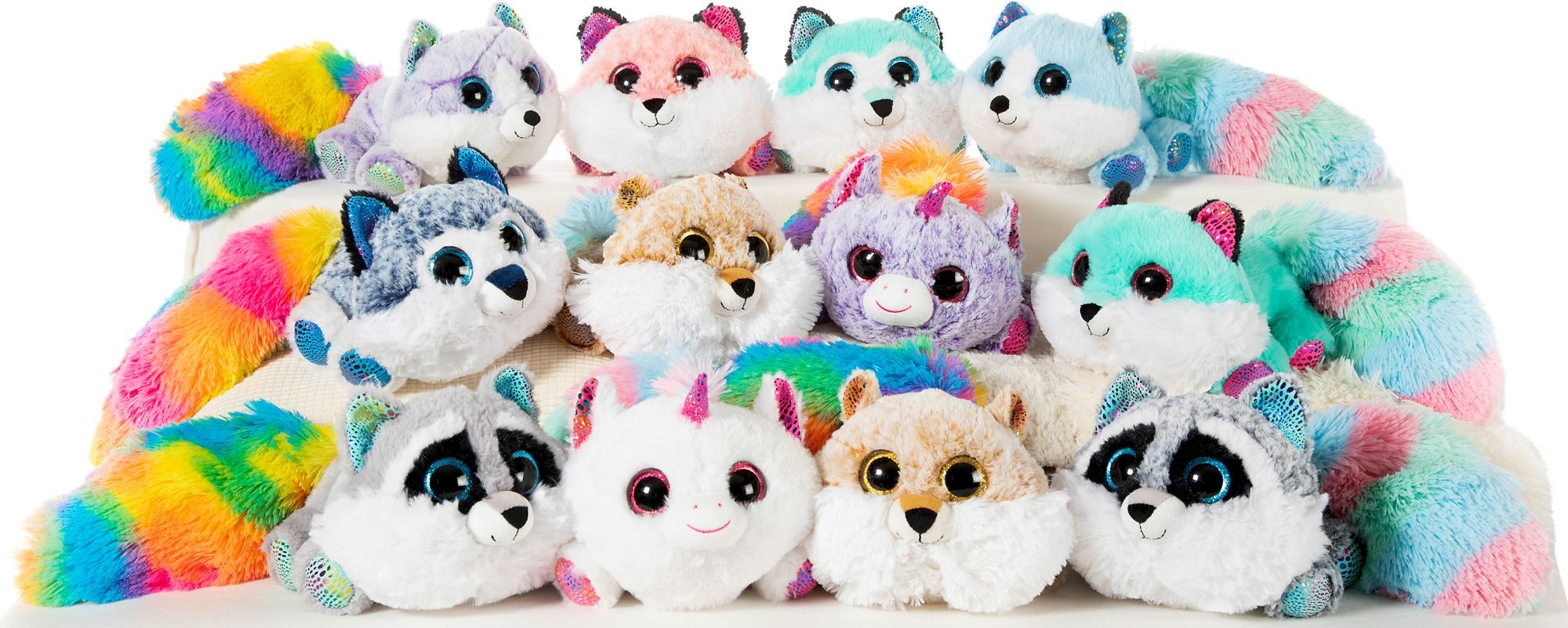Aus Softwool-Material, große Kulleraugen, mit knallbuntem Schweif, weichgefüllt, Farbe: quietschebunt