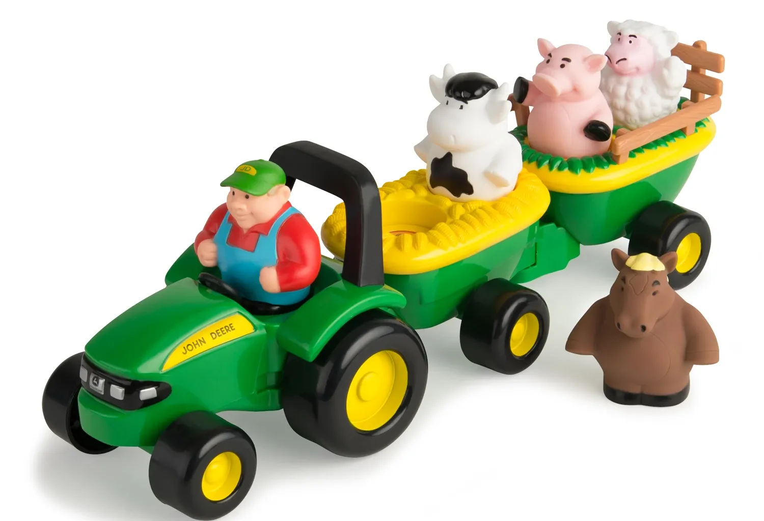 Die Figuren sind einzeln abnehmbar und man kann mit ihnen auch ohne Heuwagen spielen. Drückt man auf den Fahrer ertönt lustige Musik.