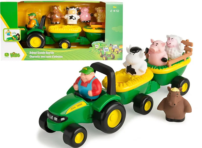 Die Figuren sind einzeln abnehmbar und man kann mit ihnen auch ohne Heuwagen spielen. Drückt man auf den Fahrer ertönt lustige Musik.