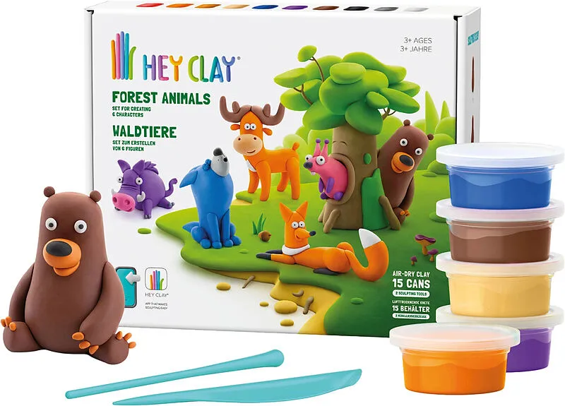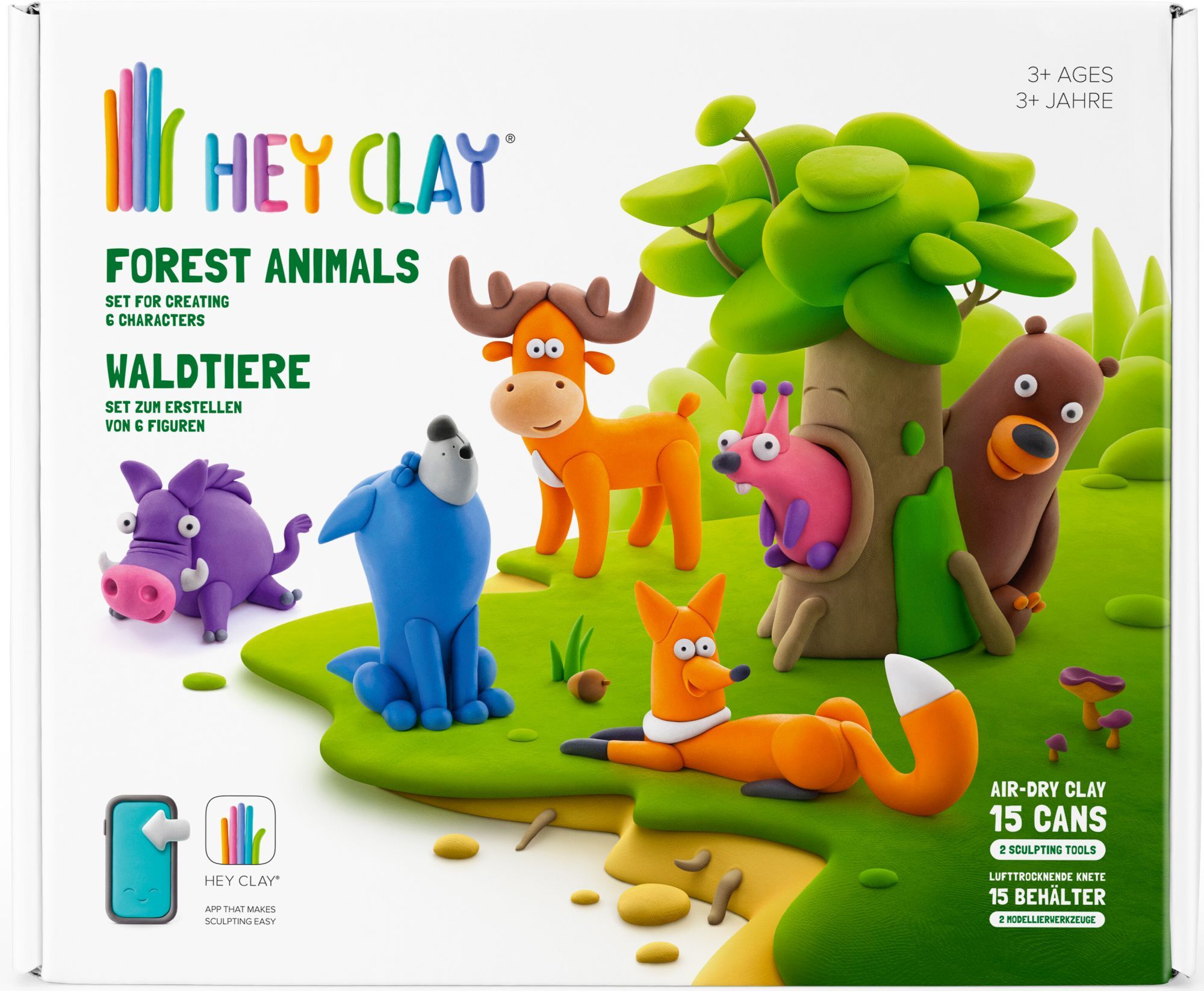 HEY CLAY Waldtiere Lasse deiner Kreativität freien Lauf! Das große Set mit 15 Dosen und 2 Modellierwerkzeugen, sorgt für endlosen Knetspaß! Es ermöglicht dir, alle 6 Figuren aus dem Themengebiet zu formen. Die Verpackung enthält ein Infosheet zum Freischalten ...