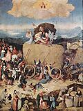 Hieronymus Bosch - Heuwagen, Triptychon, Mitteltafel: Der Heuwagen - um 1500 - Öl auf Holz - Madrid - Museo del Prado - Niederlande - Renaissance