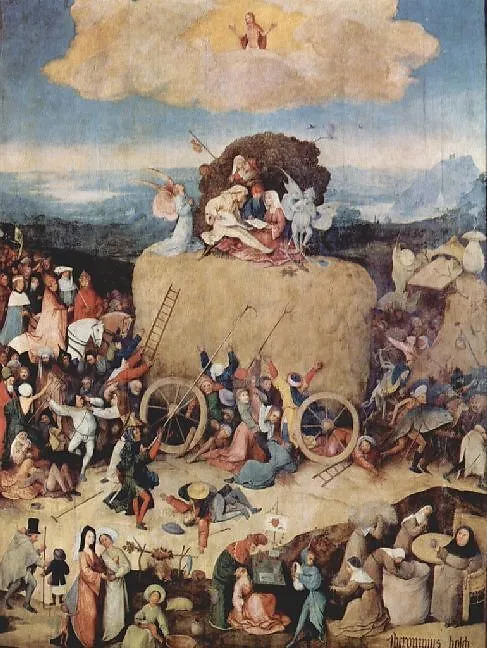 Hieronymus Bosch - Heuwagen, Triptychon, Mitteltafel: Der Heuwagen - um 1500 - Öl auf Holz - Madrid - Museo del Prado - Niederlande - Renaissance