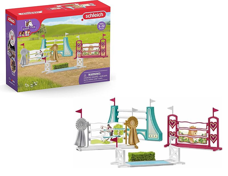 schleich® Horse Club 42612 Hindernisse Zubehör Ist das Hindernis noch zu hoch fürs Pferd oder schafft es den Sprung? Falls es doch eine Stange reißt, übt ihr lieber mit einem niedrigeren Hindernis. Die Stangen können ja in der Höhe verstellt werden. Vielleicht...