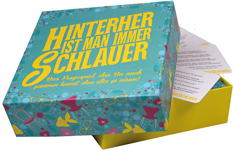 Hinterher ist man immer schlauer Hinterher ist man immer Schlauer ist ein tolles, mitreißendes und spannendes Fragespiel, bei dem Besserwisser ausgespielt und die eigenen Wissenslücken überspielt werden können.Dabei kann Jeder gewinnen - auch wenn die Anderen ...