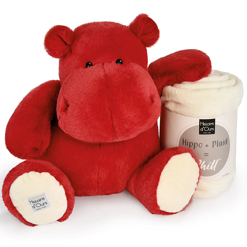 Hippo mit Kuscheldecke rot, 45cm