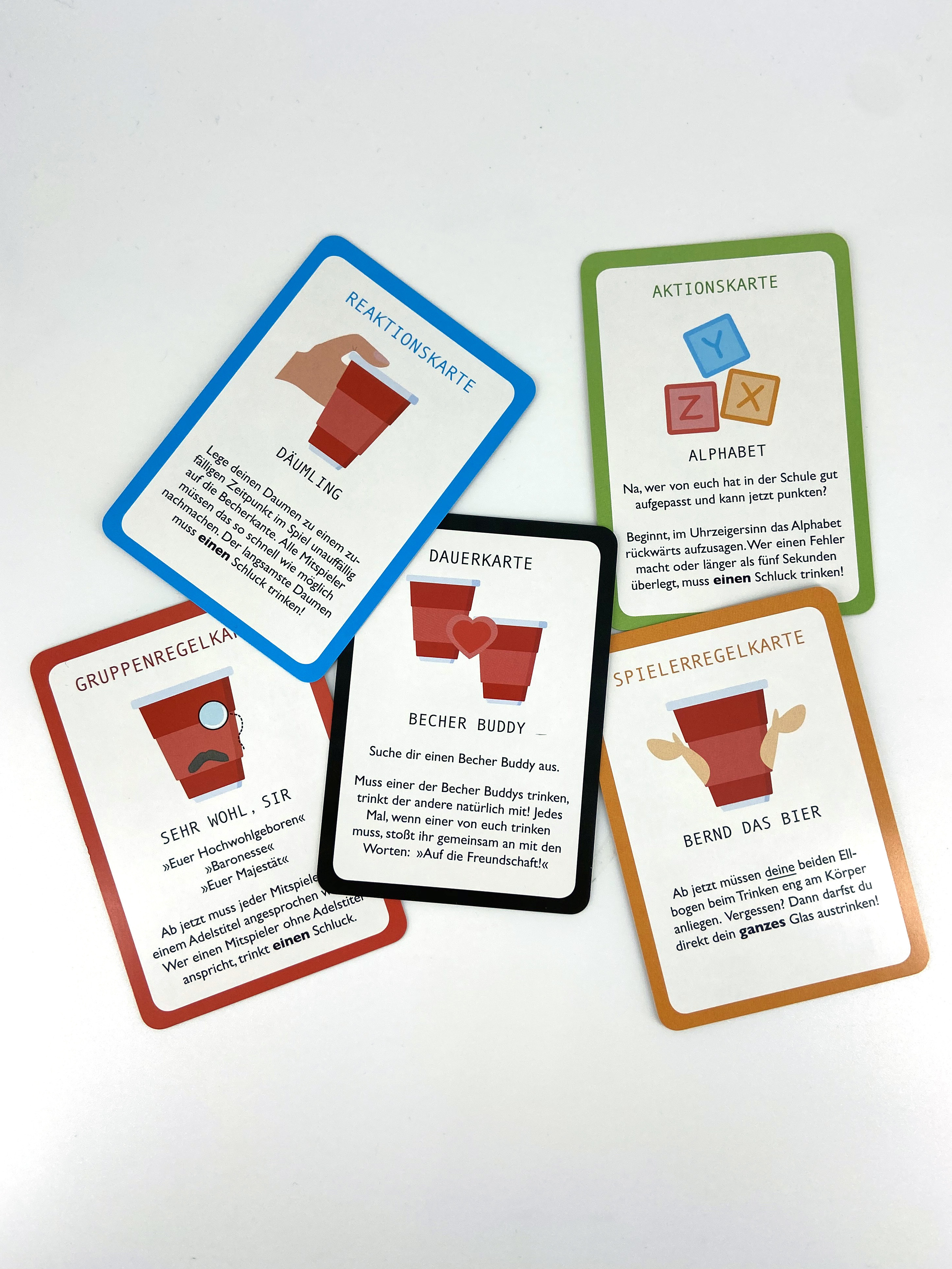 Endlich ein Trinkspiel, das wirklich Spaß macht!Mit diesem stimmungsgeladenen Kartenspiel machst du deine Party zu einem unvergesslichen Erlebnis. Eine kunterbunte Mischung aus feuchtfröhlichen Aktions- und Regelkarten peppt die Stimmung auf und bringt deine G...