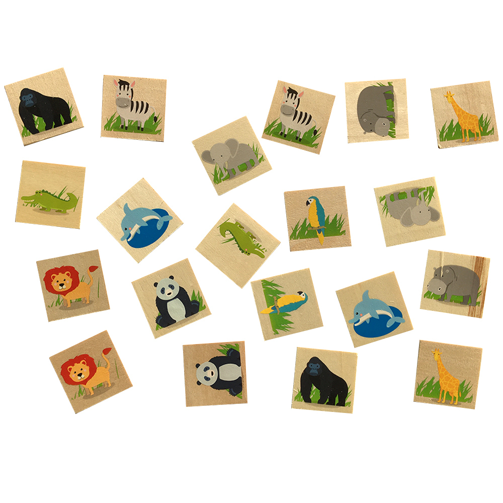 Schönes Memory-Spiel aus FSC-Holz, Thema: Tiere. Memory fördert die Konzentration und die Form- und Farberkennung. Kids lernen spielerisch verschiedenen Tierarten und Safari kennen. Die Elemente sind speziell für kleine Kinderhände gefertigt und liegen gut in ...