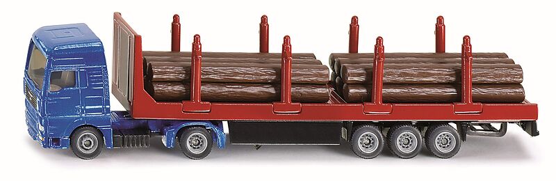 Ist die Arbeit im Kinderzimmerforst mit den SIKU-Modellen Harvester, Forwarder und Traktor mit Forstanhänger getan, muss die Ernte des Waldes noch zum Sägewerk transportiert werden. Dies erledigt die bärenstarke MAN-Sattelzugmaschine mit dem Holz-Transport-Auf...