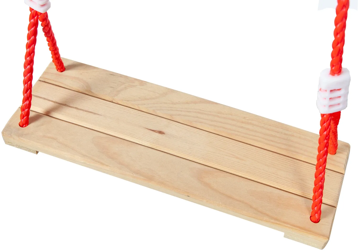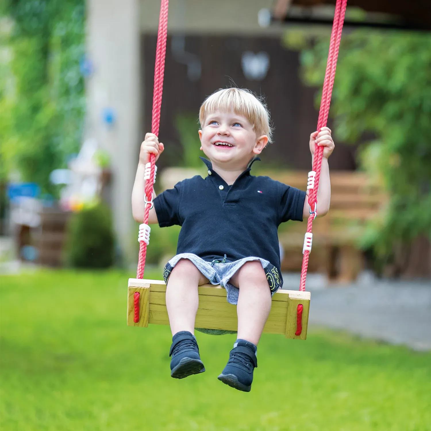 Seil 130-240 cm. Die Seillänge ist verstellbar, auf dem Sitz aus Holz sitzt es sich angenehm. Diese stabile und sichere Schaukel wird die Kinder begeistern.