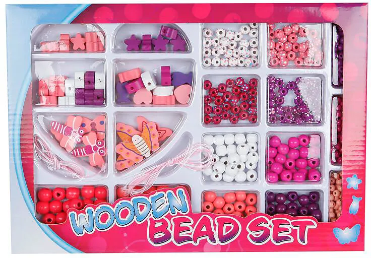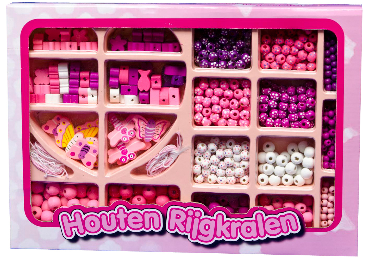 Die Perlen sind farblich aufeinander abgestimmt in Rosa Tönen. Inklusive Schnur. Ab 3 Jahren.