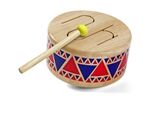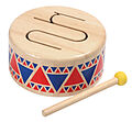 Vier verschiedene Segmente können auf der Trommel mit einem Gummischlägel angeschlagen werden. Jedes der Segmente erzeugt einen anderen Ton.