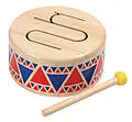 Vier verschiedene Segmente können auf der Trommel mit einem Gummischlägel angeschlagen werden. Jedes der Segmente erzeugt einen anderen Ton.
