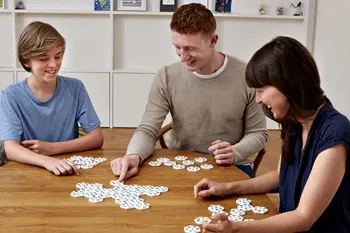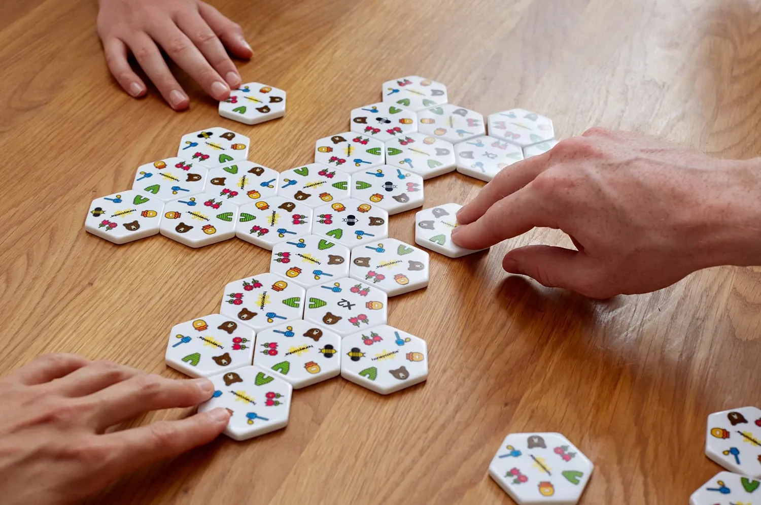 Bei diesem bunten Wabenspiel gilt es die sechseckigen Spielsteine als Bienenstock aneinander zu legen. Gewonnen hat nicht zwingend der Schnellste, sondern der Spieler, der die meisten passenden Symbole gelegt hat. Im praktischen Stoffbeutel verpackt, findet da...