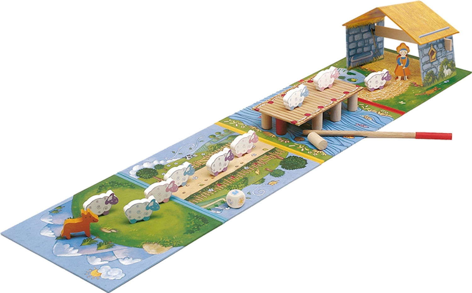 ab 4 Jahren 2-6 Spieler Spieldauer von 15 min. Bei dem besonders netten Kinderspiel Hop! Hop! Hop! von Djeco gilt es gemeinsam den Wind zu besiegen, der die Brücke zum Einsturz bringen möchte, über den die Schäfchen ihren Weg ins Trockene finden. Werden es die...