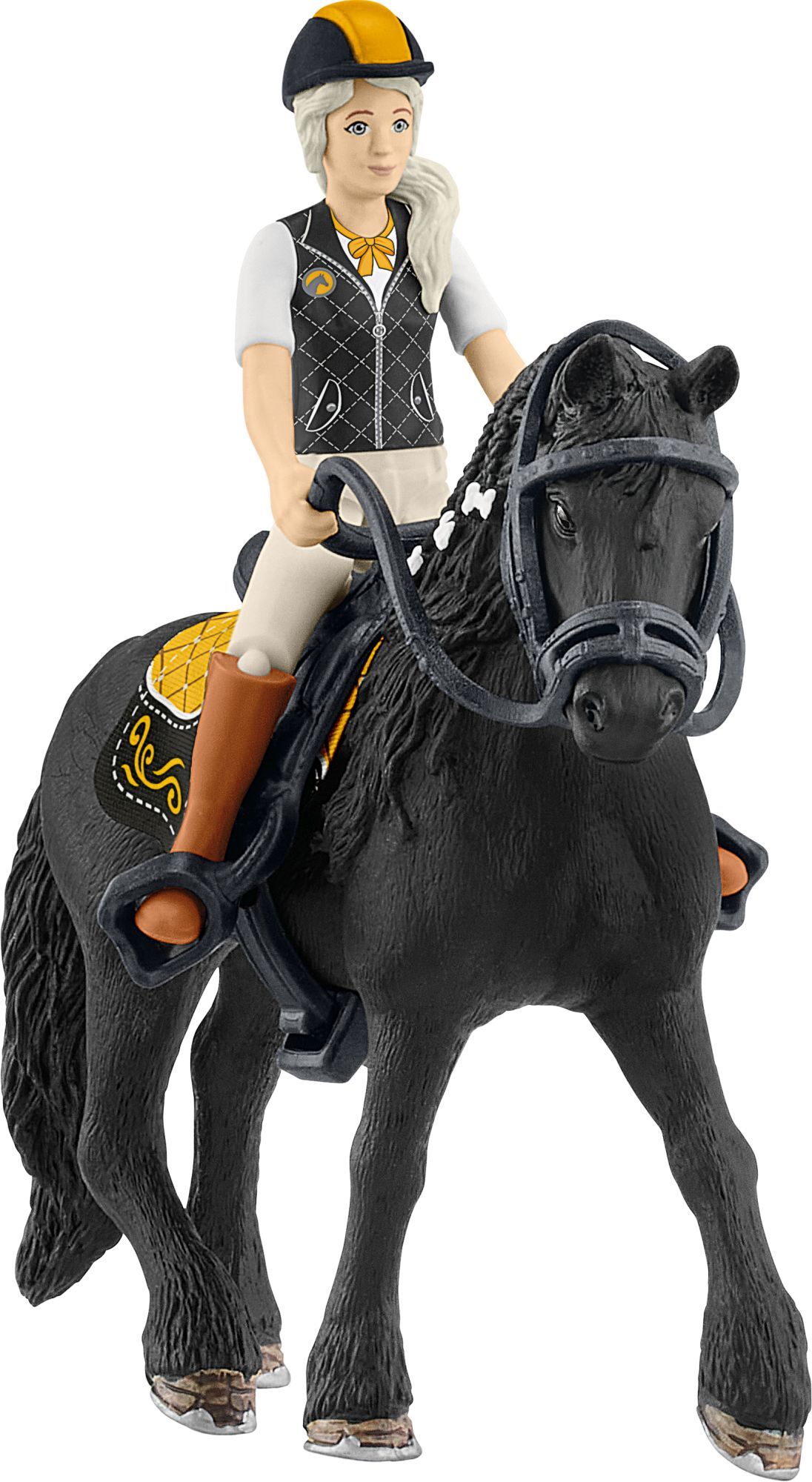 HORSE CLUB Tori & Princess Tori ist glücklich: Endlich ist sie im Pferdestall bei ihrer Friese Stute Princess. Hier fühlt sie sich am wohlsten. Heute wollen sie gemeinsam ausreiten. Sie breitet eine Satteldecke auf dem Rücken der Spielfigur aus und legt den Sa...