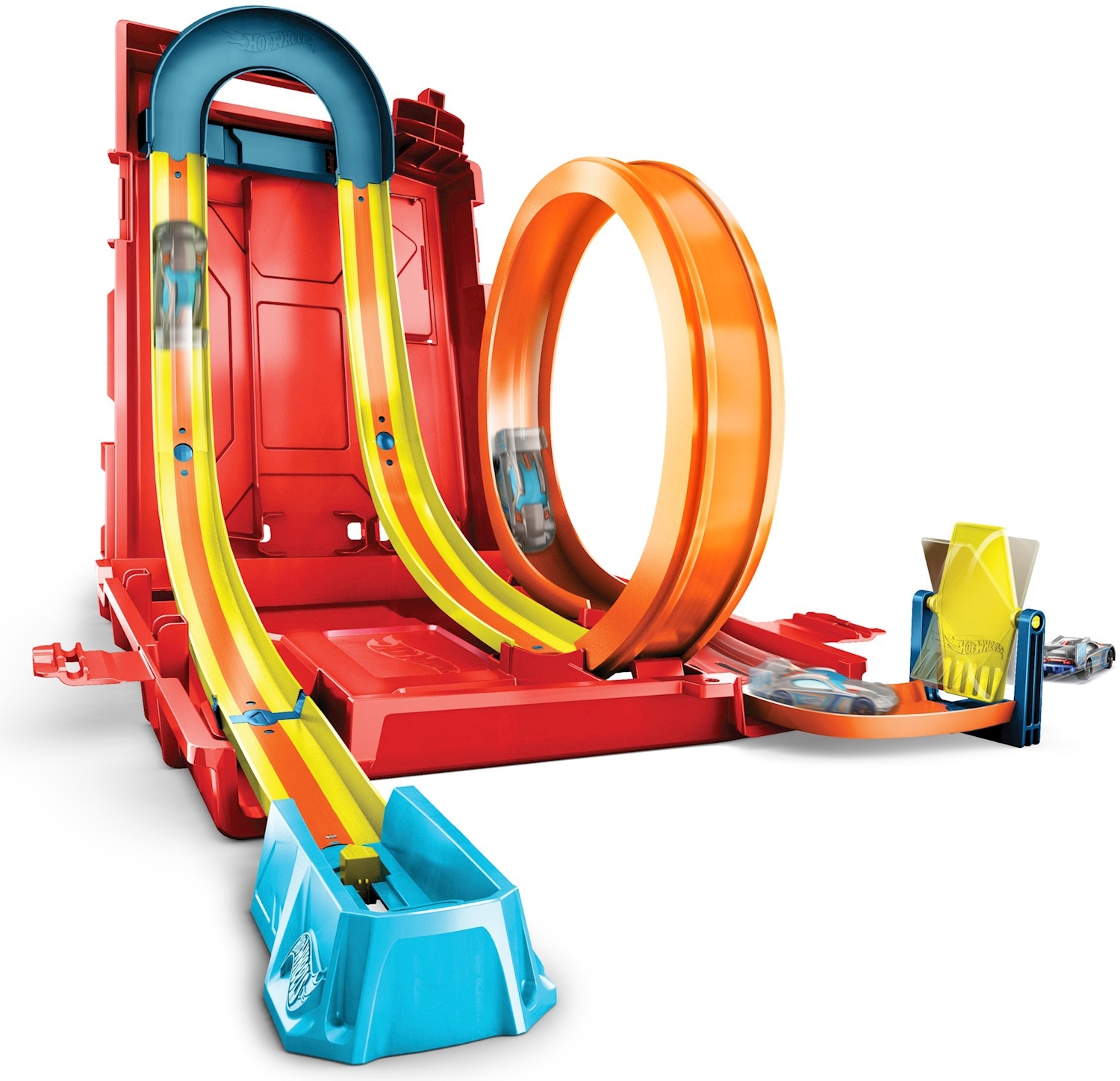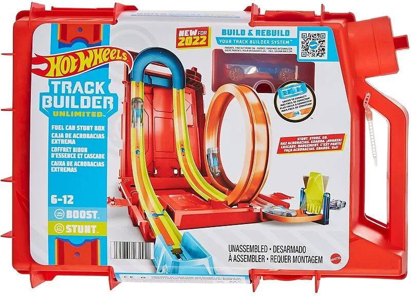 Diese Stuntbox bietet spannenden Spielspaß und regt die Fantasie an. Mit den geraden Trackteilen und Kurven können Kinder epische Stunt- und Rennstrecken bauen. Alle Teile können im Behälter in Form eines Benzinkanisters verstaut werden.