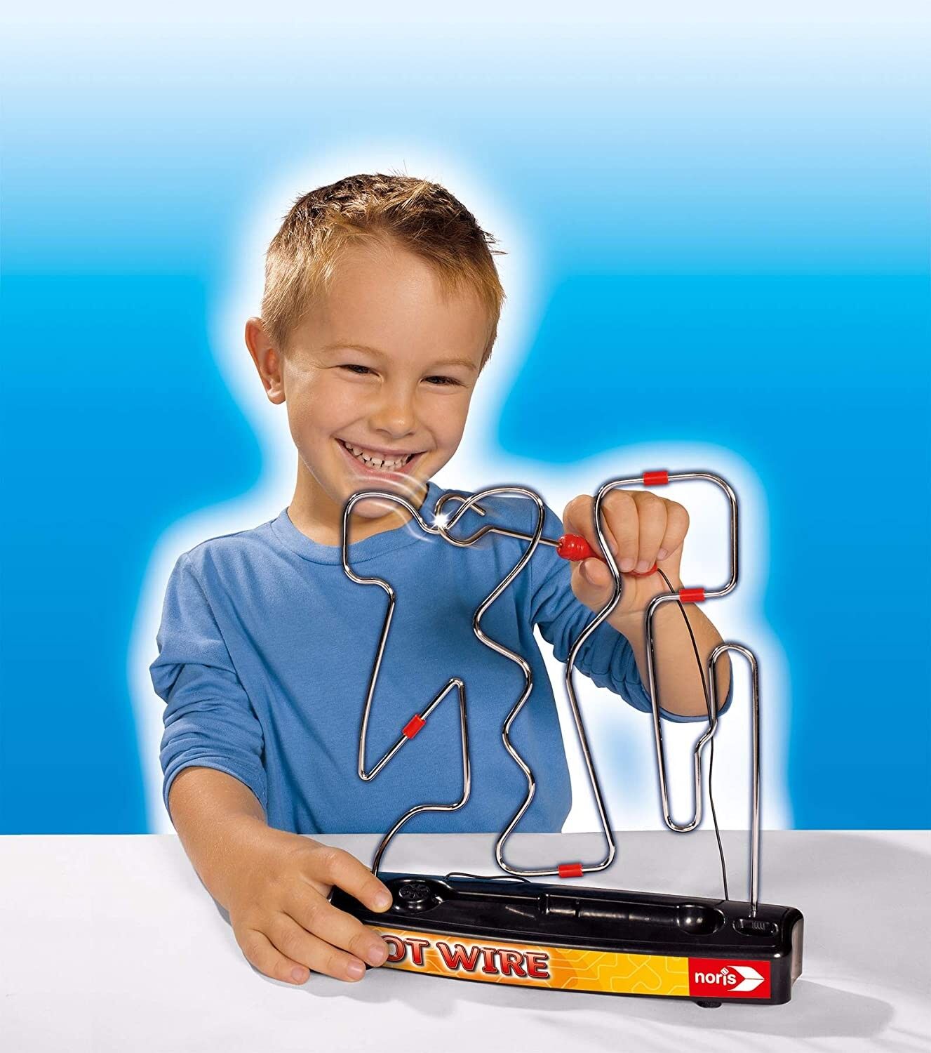 Achtung der Draht ist heiß! Bei diesem Geschicklichkeitsspiel muss versucht werden einen Stab entlang des Drahts zu führen ohne diesen zu berühren Sobald der Draht berührt wurde ist ein Signalton zu hören und das Spiel muss von vorne begonnen werden. Spielspaß...