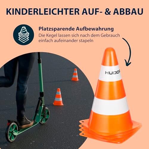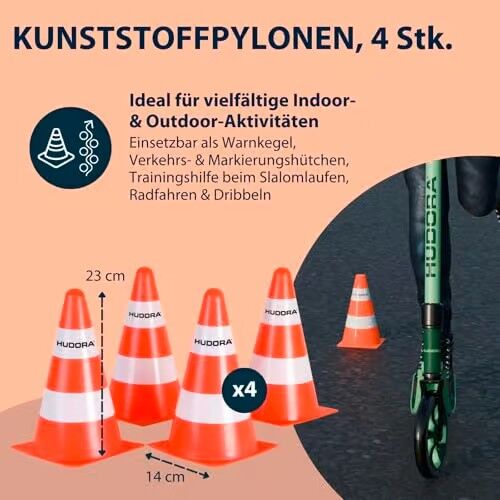 HUDORA 76105 - Pylonen Set. Mit den Hudora Pylonen lassen sich ohne großen Aufwand tolle Parcours aufstellen oder tolle Geschicklichkeits-Turniere für Radfahrer und Inlineskater veranstalten! Inhalt: 4x Pylonen in Signalfarben orange/weiß. 22,5 cm hoch und 13 ...