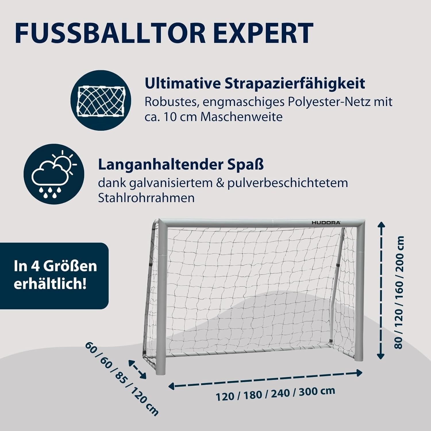 Fußballtor Expert von HUDORA - Professionalität jetzt auch für den heimischen Garten - Breite: 180 cm - Aufbaumaß (LxBxH): 180 x 120 x 60 cm - Material: Netz aus PET, pulverbeschichteter Stahlrohrrahmen. Besonders standfestes Tor mit 75 mm von Pfosten und Latt...