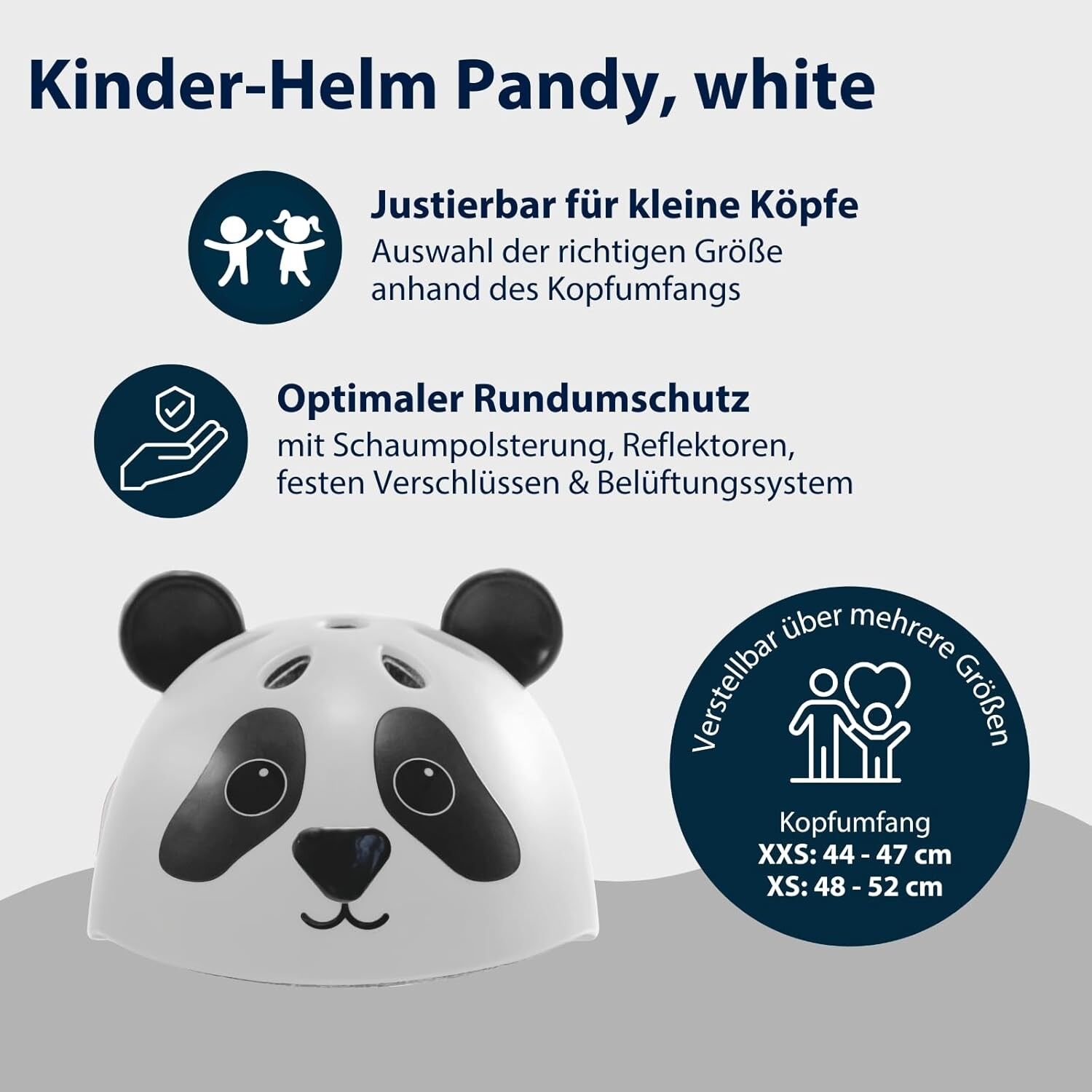 Kinderhelm Pandy, schwarz-weiß, Gr. 44-47 Was haben Laufrad-Helden und Roller-Queens gemeinsam? Genau, den passenden Helm! Mit Pandy sind unsere Youngsters immer stylish und sicher unterwegs. Doch der neue Kopfschutz im Bären-Look ist nicht nur supersüß anzusc...