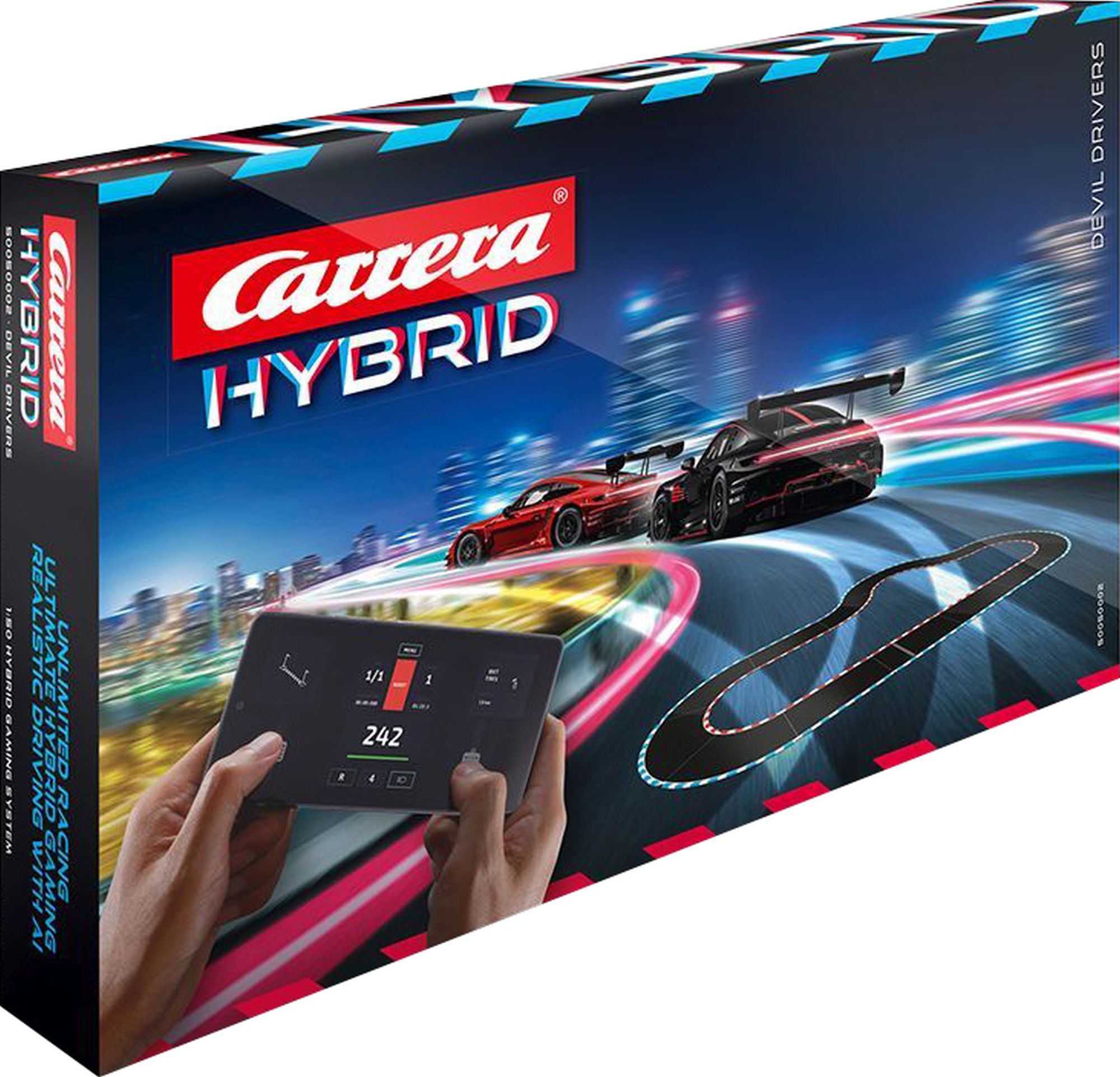 CARRERA HYBRID - Racing Set Devil Drivers Devil DriversCarrera Hybrid. Maßstab 1:50. Ab 12 Jahren. Carrera Hybrid die perfekte Kombination aus Gaming und Rennspaß, denn die Fahrzeuge können vollkommen frei mit Vollgas über die Fahrbahn düsen. Die KI-Unterstütz...