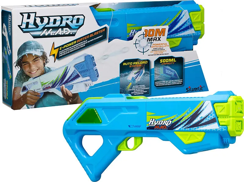 Die Hydro M.A.D. Wasserkanone ist ein E-Power Blaster, der keinen gewöhnlichen Wasserstrahl, sondern Wasserkugeln spritzt! Die Schiessdistanz kann bis zu 10 Meter betragen. Die wiederaufladbare Batterie sorgt für grenzenlosen Spielspass. Silverlit