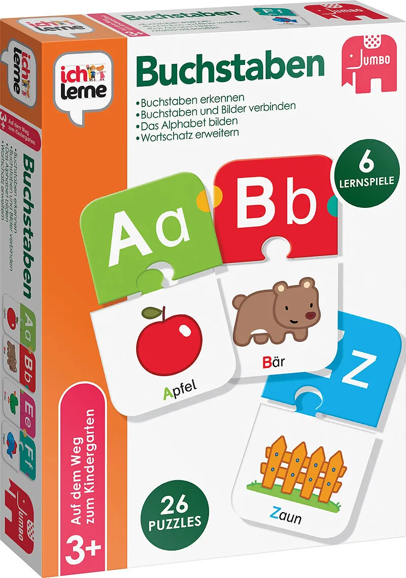 Lerne anhand von 6 Spielen die Buchstaben des Alphabets. Die Spiele können sowohl alleine als auch mit mehreren Spielern gespielt werden. Die Kinder lernen auf spielerische Weise die Buchstaben kennen. Sie lernen Buchstaben anhand eines Bildes zu suchen, das A...