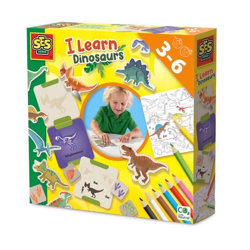 Welcher Dino ist das wohl' Mit diesem Set Ich lerne Dinosaurier von SES Creative ist es spielend leicht Dinosaurierarten, deren Eigenschaften und Futtervorlieben kennenzulernen und zwar auf ganz unterschiedliche Art und Weise. Zu jedem Dino gehören 3 Karten: e...
