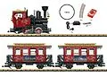 LGB 70308 - Startset Weihnachtszug Dieses Startset enthält einen Oldtimerzug bestehend aus einer Tenderlok und 2 Personenwagen in weihnachtlicher Gestaltung. Die Lok ist mit einem leistungsstarken kugelgelagerten Bühler-Motor sowie Spitzenlicht und einem Rauch...