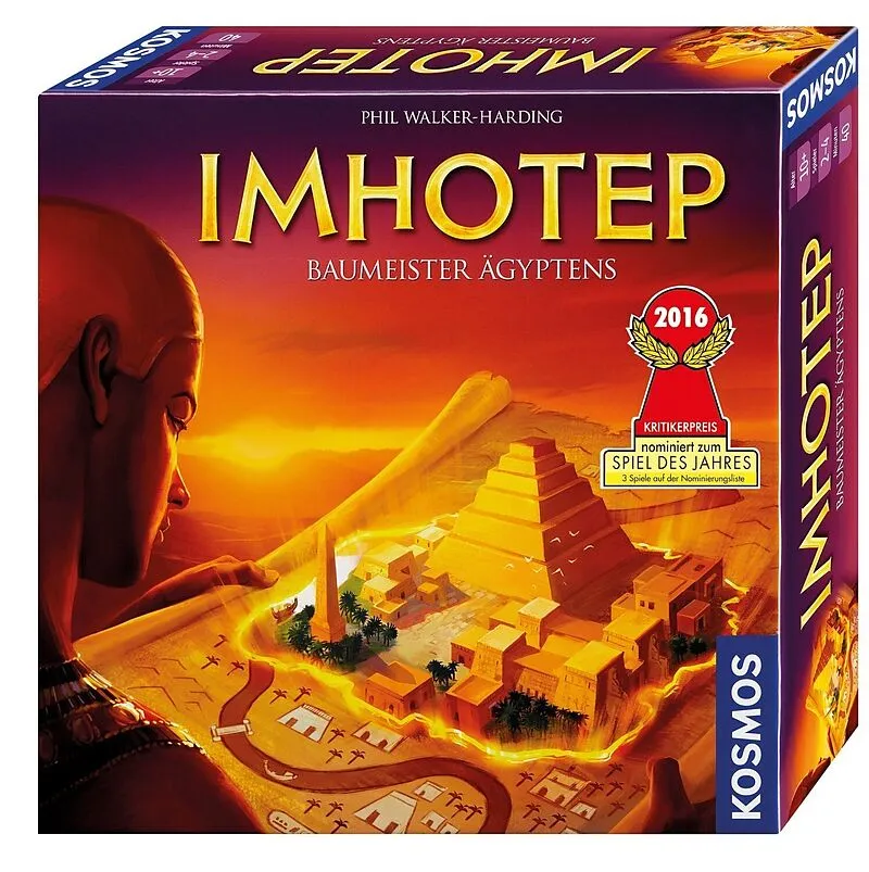 Imhotep war der erste und berühmteste Baumeister Ägyptens. In diesem Strategiespiel werden die Spieler selbst zum Baumeister und erschaffen wie Imhotep Monumente für die Ewigkeit. Dafür werden Steine benötigt, die mit Booten zu verschiedenen Baustätten gebrach...