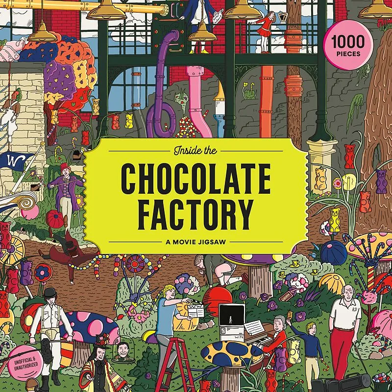 Setzen Sie die Welt von Willy Wonkas berühmter Schokoladenfabrik in diesem mit Süßigkeiten überzogenen Puzzle zusammen. So seltsam und wunderbar wie Wonkas Vision, bezieht sich die surreale Illustration sowohl auf den Film von 1971 als auch auf Roald Dahls Ori...