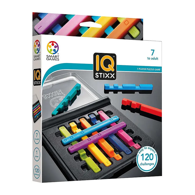 SMARTGAMES IQ-Stixx 5 horizontale müssen auf 5 vertikale STIXX passen. Kannst du die STIXX in diesem reisefreundlichen Knobelspiel mit 120 Herausforderungen kreuz und quer legen? Ab 7 Jahren. Nutze deinen Grips und staple die STIXX aufeinander! 5 horizontale m...