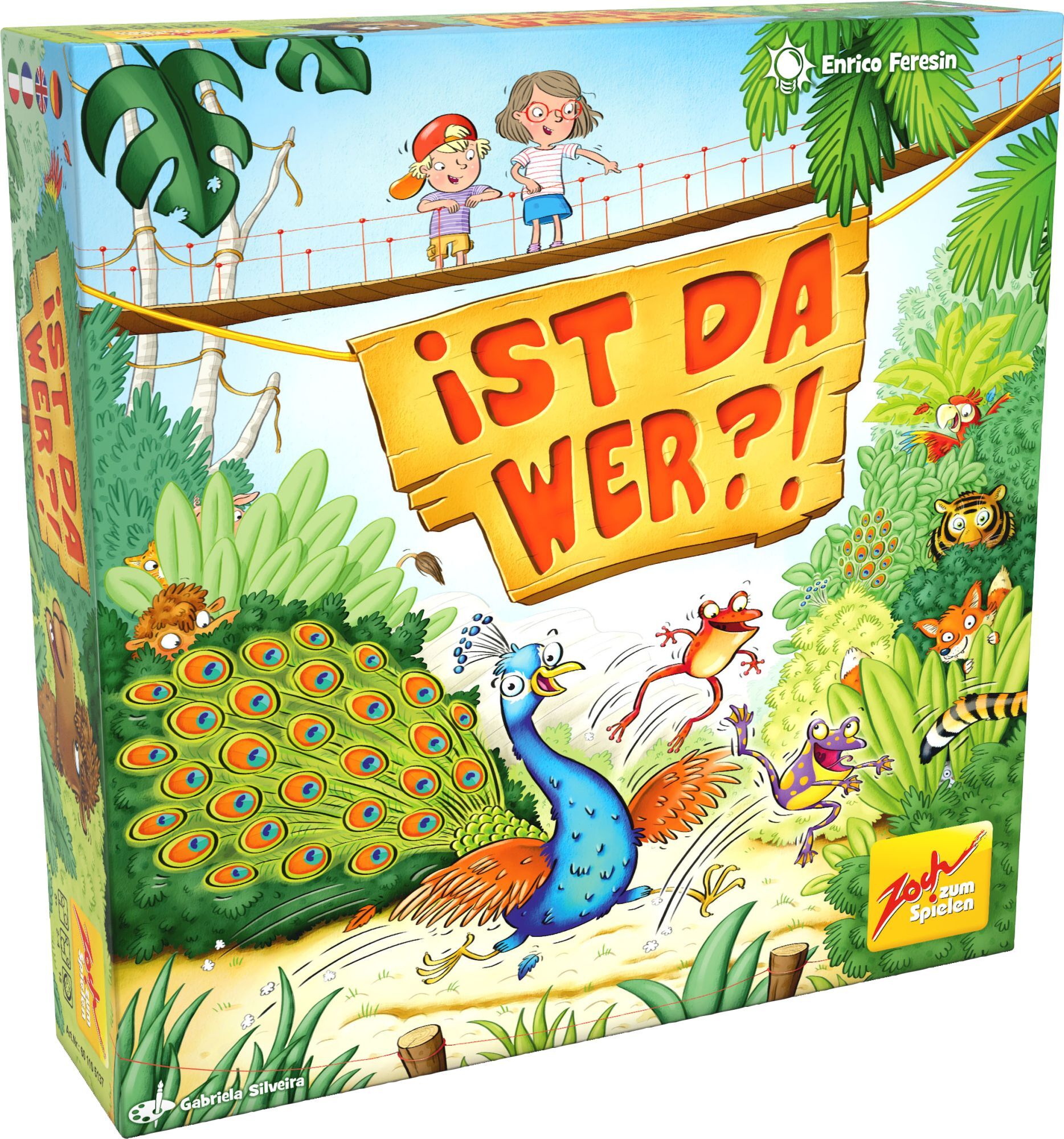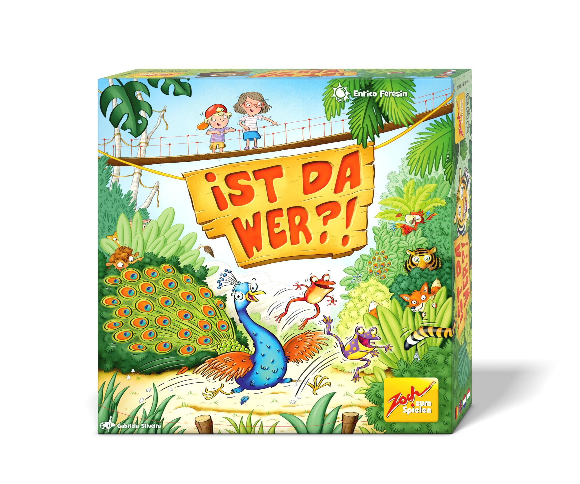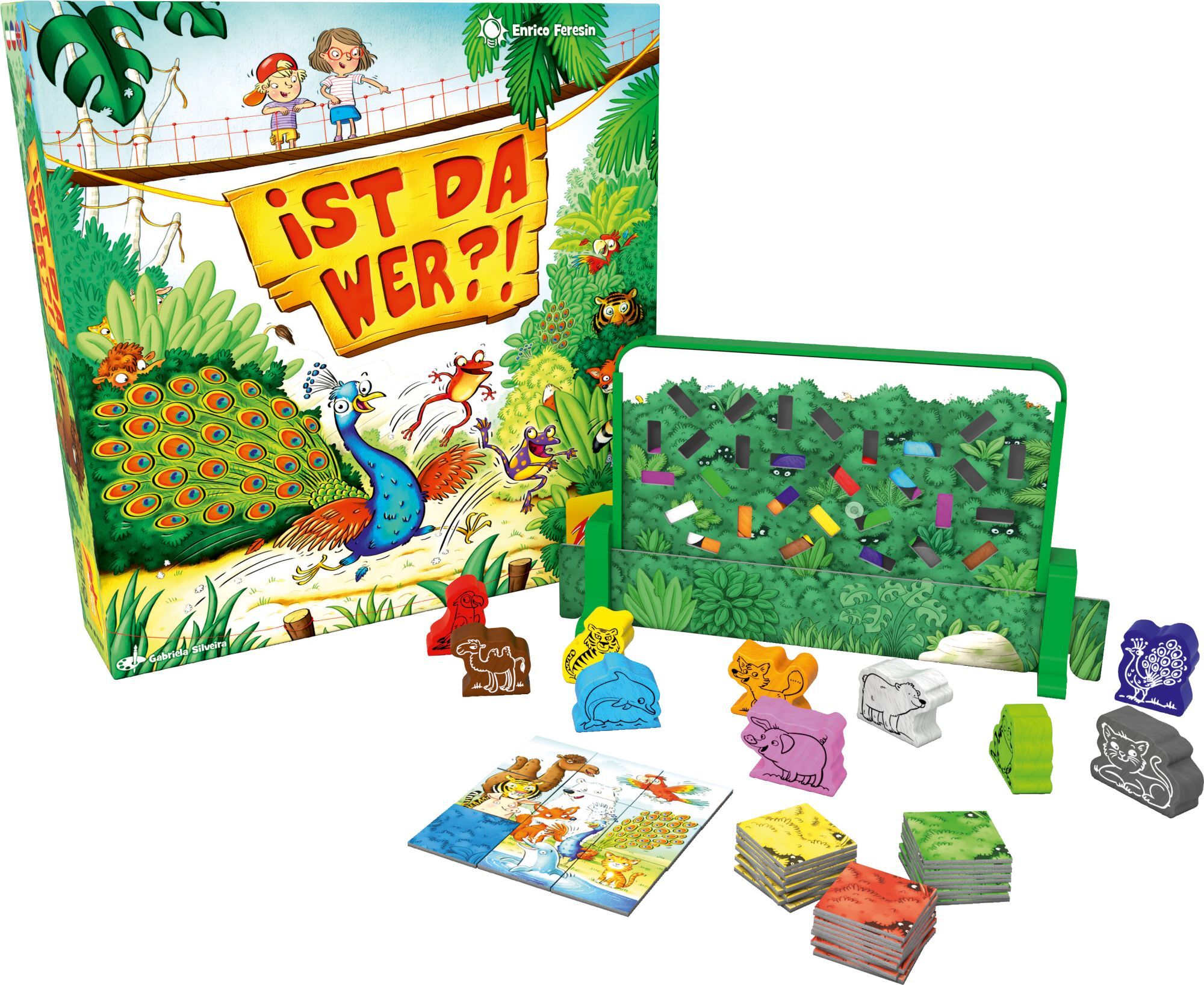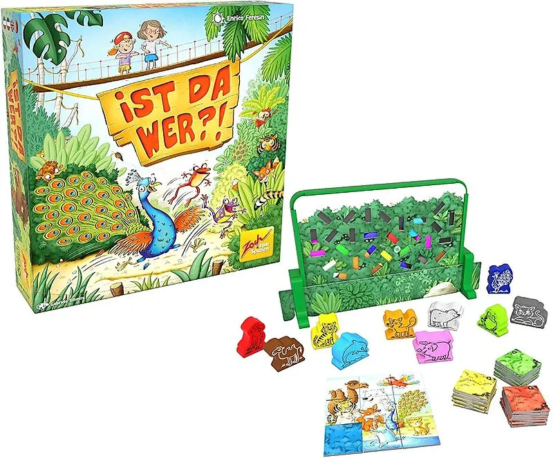 Ist da wer? Tiere verstecken sich im Gebüsch. Nur ihre Farben sind zu sehen. Wer herausfindet, welche Tiere sich weiter unten im Dickicht komplett verbergen, schnappt die richtige Tierfigur.