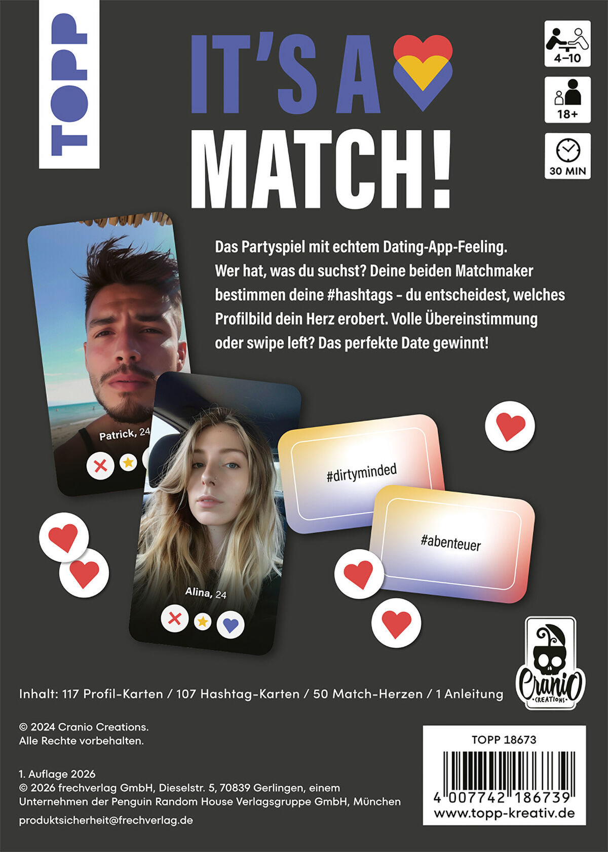 Das Partyspiel für echte Dating-App-Atmosphäre! Erlebe das ultimative Partyspiel, das die Welt der Dating-Apps direkt zu dir nach Hause bringt. Wer hat, was du suchst? Deine beiden Matchmaker bestimmen deine #hashtags - du entscheidest, welches Profilbild dei...