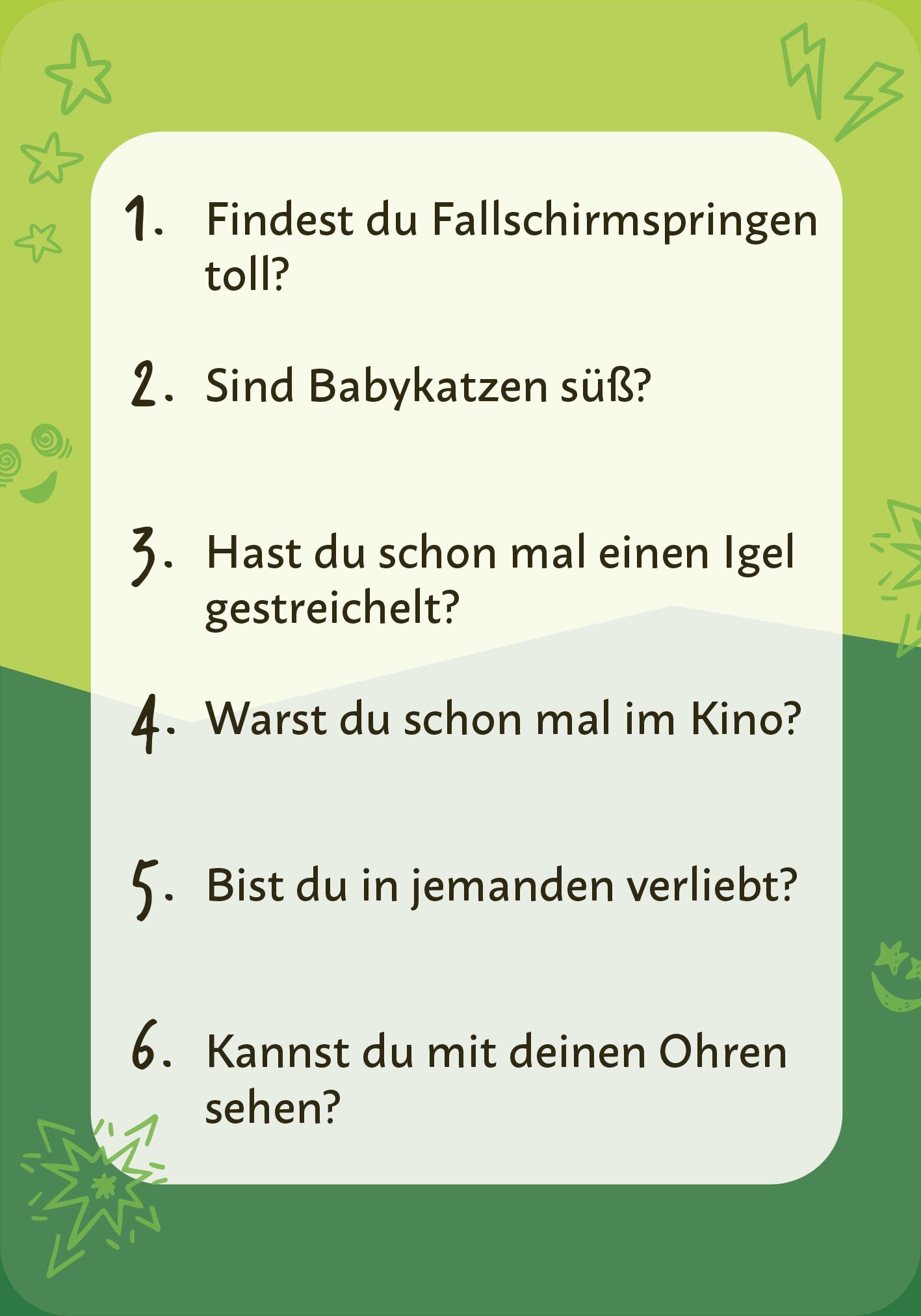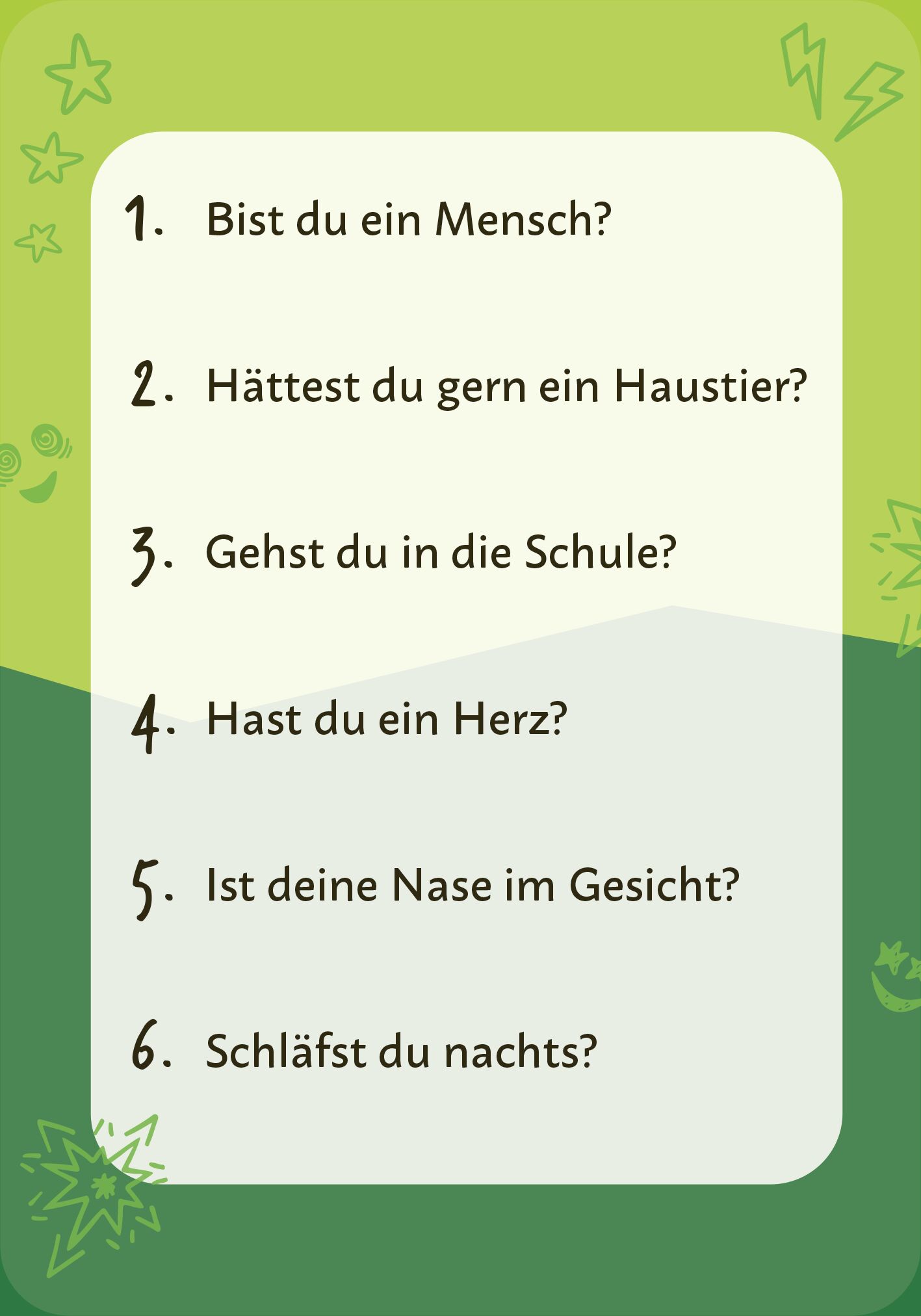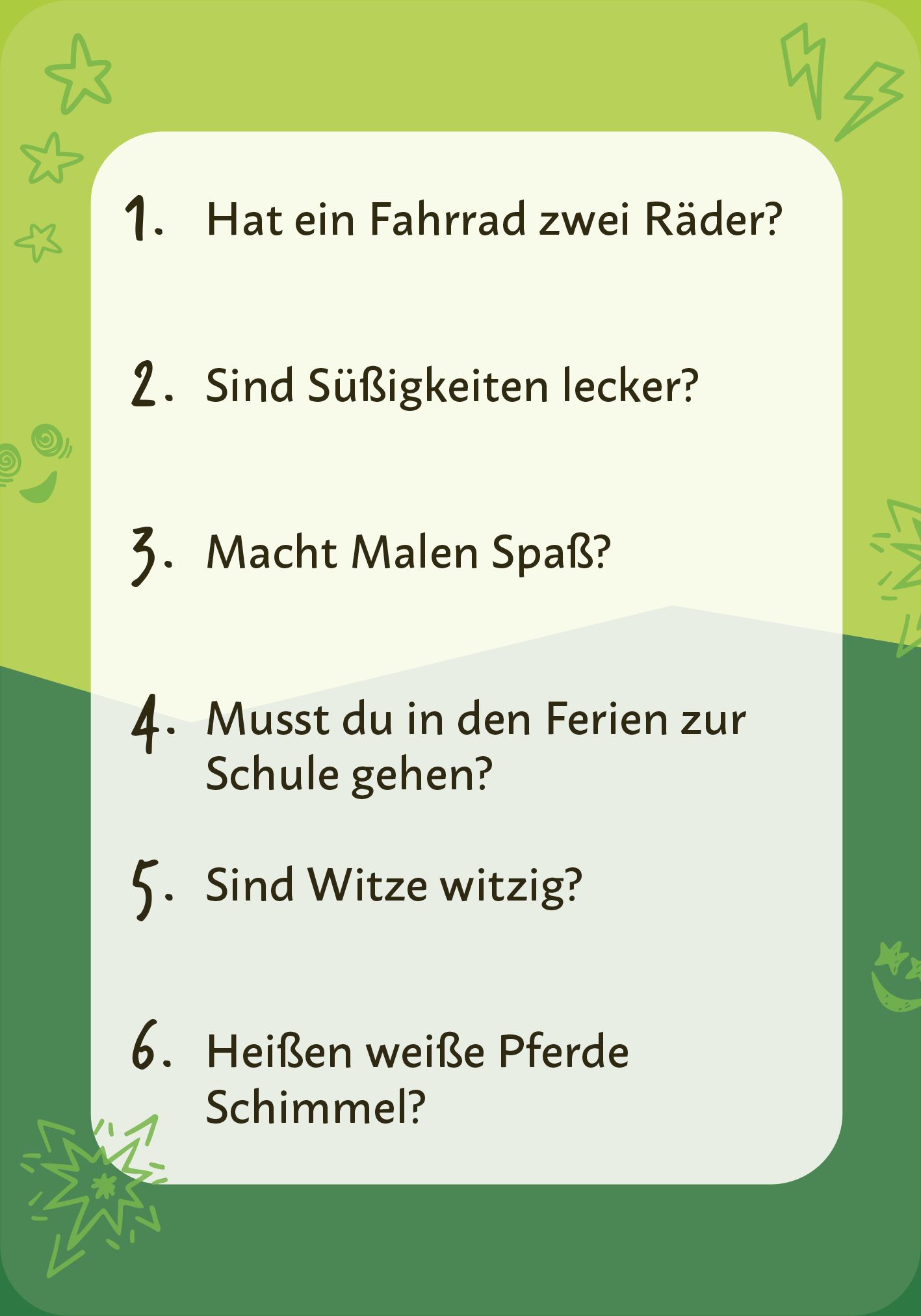 Geniales Partyspiel Dank des einfachen Spielprinzips ist »Ja & nein darf nicht sein « genau das richtige Kartenspiel für jede Party. Fragen wie »Sind Tiger gefährlich?« oder »Isst du gerne Schokolade« würdest du prompt mit Ja beantworten, oder? Aber in di...