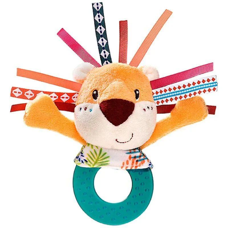 Diese weiche, besänftigende Beissrassel mit Jack, dem Löwen, sorgt für zusätzliche Sinnesreize durch beruhigende Glöckchen- und Raschelgeräusche in der Rassel.