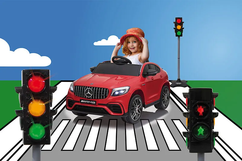 1 Ampel, 1 Fußplatte, 1 Verbindungsstecker, 2 StangenFarbe: divers. Empfohlenes Zubehör:3x AAA-Batterien.