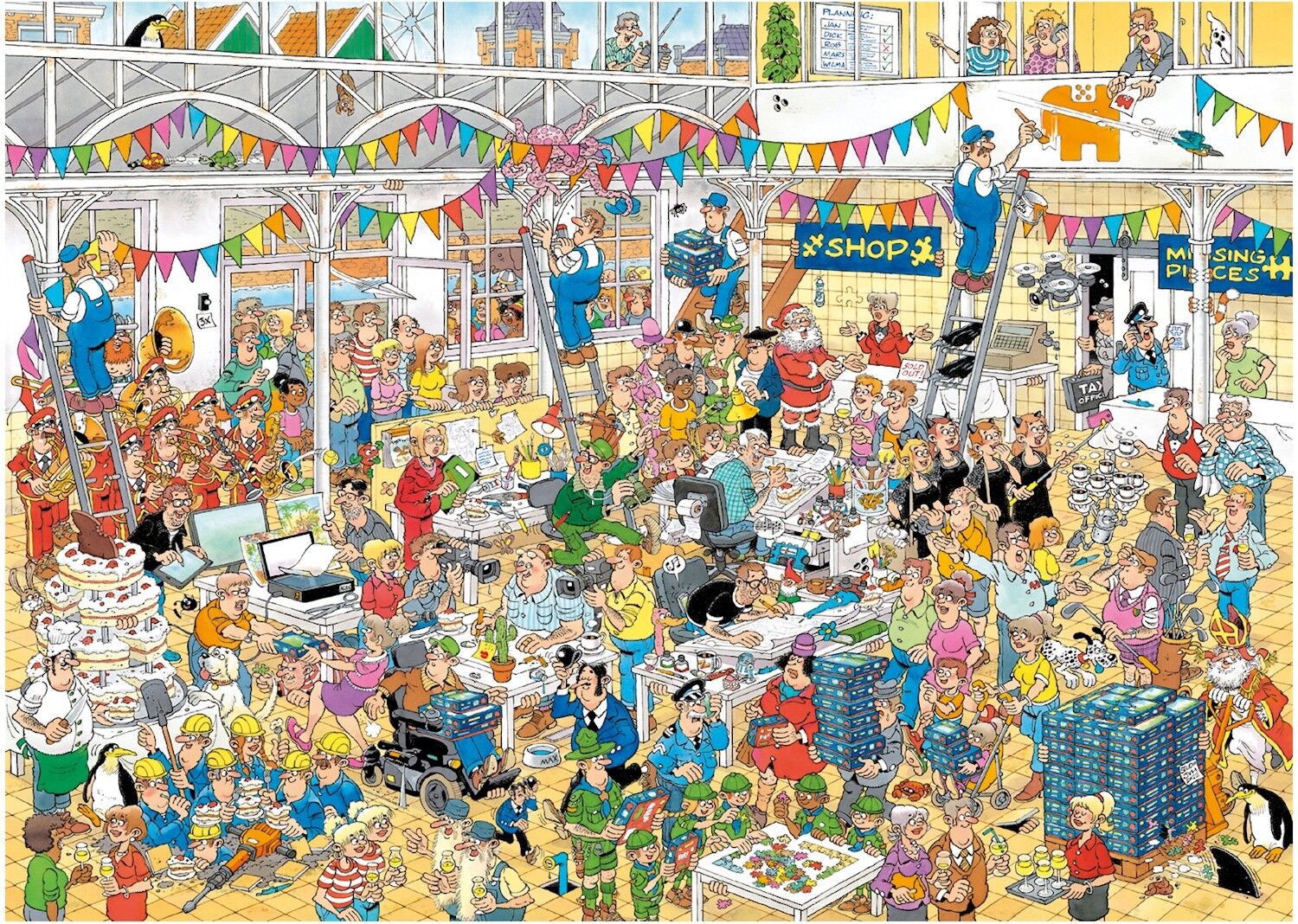 Puzzlemaße: 68 x 49 cm 2023 ist ein besonderes Jahr für Jan van Haasteren. Gemeinsam feiern wir das 10-jährige Bestehen des Studios Jan van Haasteren. Dick Heins und Rob Derks zeichnen die wunderbar witzigen Illustrationen mit hohem Wiedererkennungswert unter ...