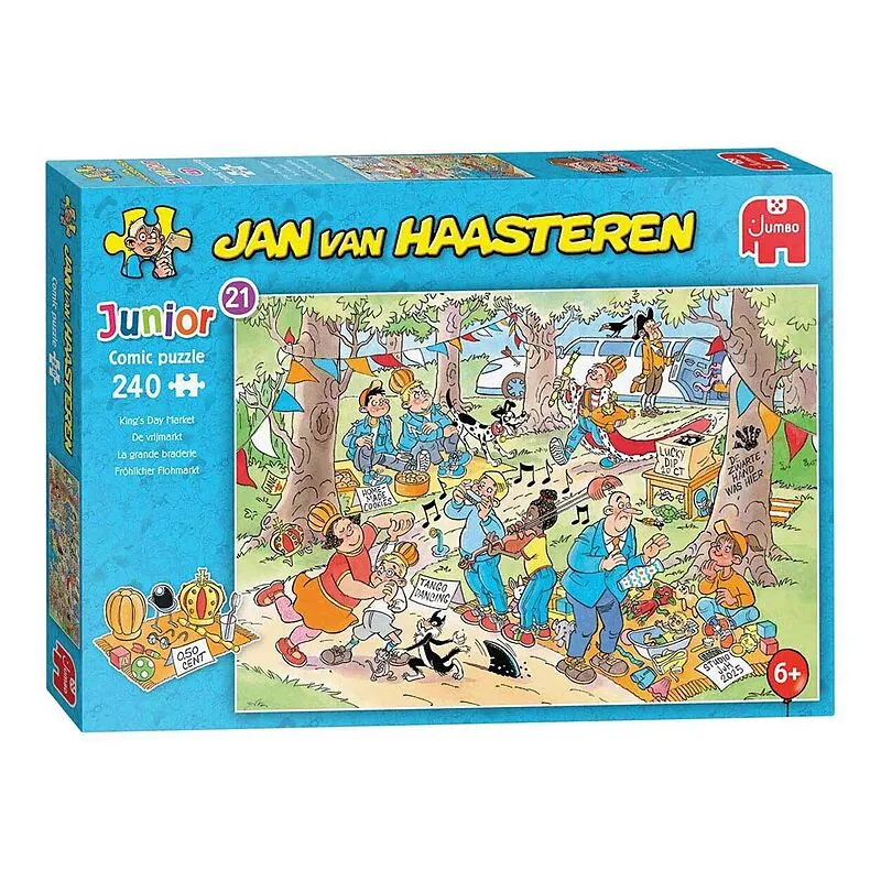 Koningsdag! Die Freunde von Jan van Haasteren stürzen sich in den Flohmarkt, um etwas Geld zu verdienen und natürlich vor allem, um jede Menge Spaß zu haben! Denn heute wird überall gefeiert. Jan van Haasteren Junior bringt Kindern ab 5 Jahren die verrückte We...