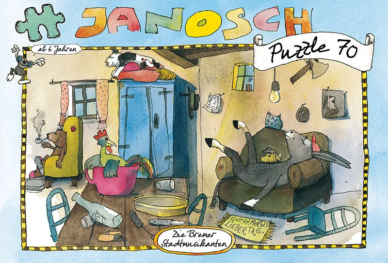 Die von Janosch gezeichneten "Bremer Stadtmusikanten" als Puzzle. Autorentext Janosch, geb. 1931 in Zaborze/Oberschlesien, machte nach dem Krieg eine Schmiede- und Schlosserlehre, arbeitete nach seiner Aussiedlung als Hilfsarbeiter in einer Textilfab...