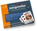 Exklusive Jassgarnitur aus feinstem Leder. Komplettes Set besteht aus Jasskartenetui in Designer-Qualität, 1 Piquetkartenset F-CH, 1 Jasstafel aus echtem Schiefer/Holz, 1 Schwamm in Böxli, und 2 Kreidestiften. Inkl. Baumwollbeutel mit Kordel um das Etui sauber...