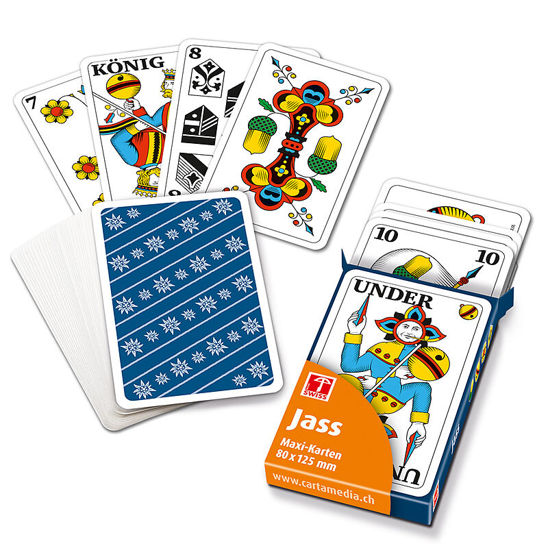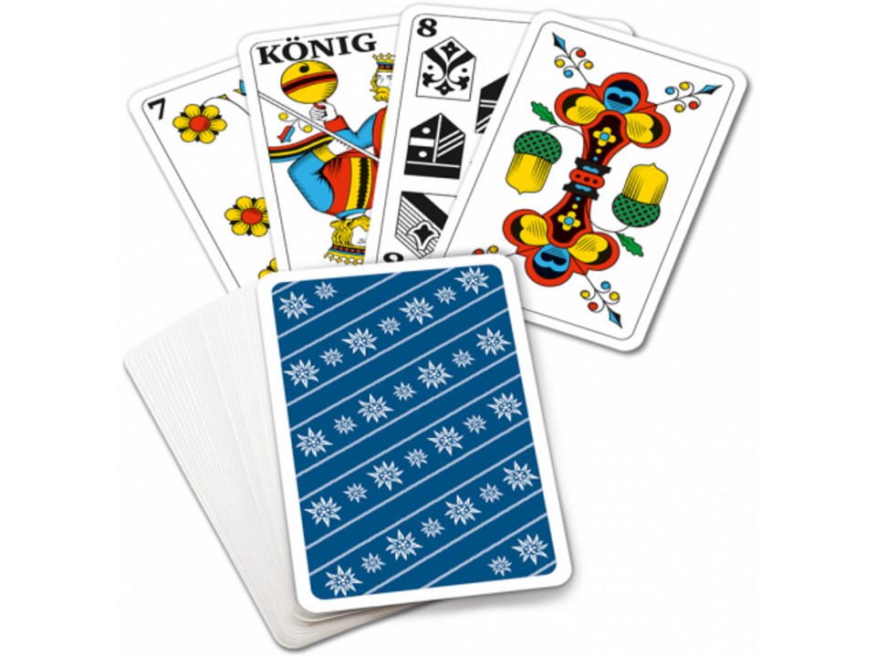 Jasskarten im Maxiformat 80 x 125 mm mit Edelweissmotiv in der Faltschachtel