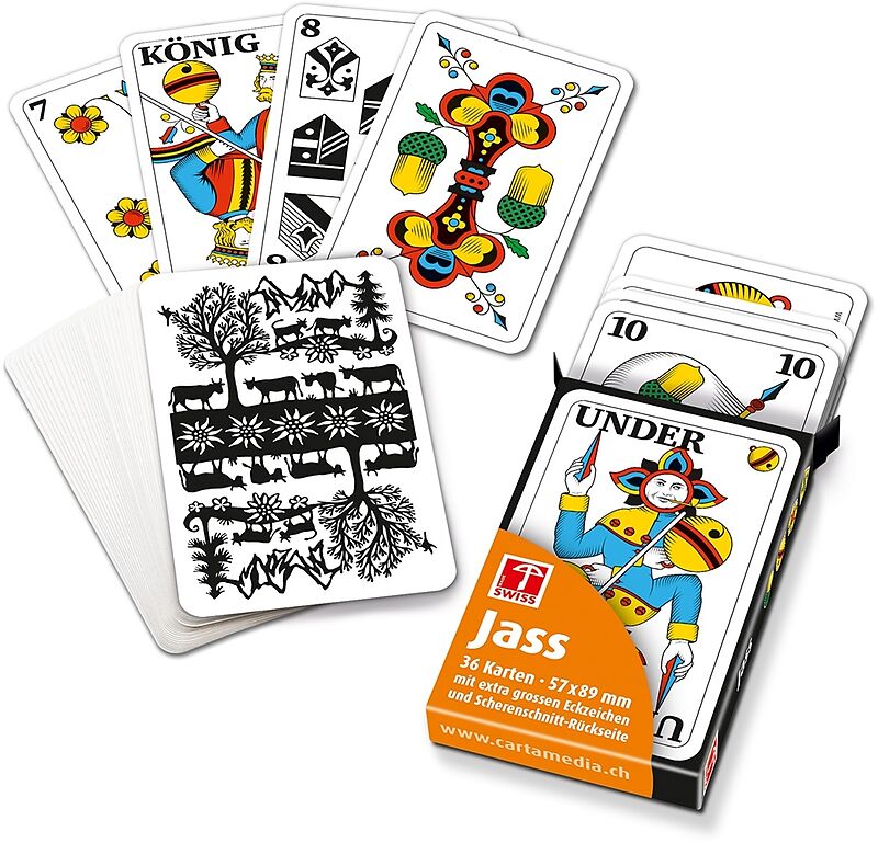 Jasskarten im Originalformat von 57 x 89 mm. Swiss Made