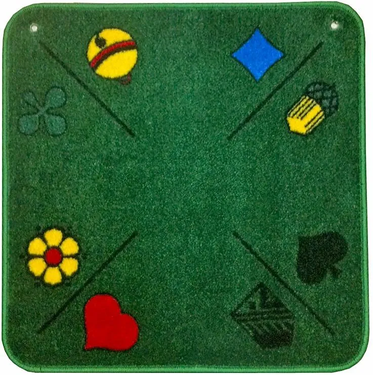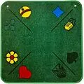 Jassteppich - mit traditionellen Jass + Piquet - Figuren mit gekurbelten Rändern und gummiertem Rücken, Rutschfest.Grösse 60 x 60 cm, Farbe: Grün.
