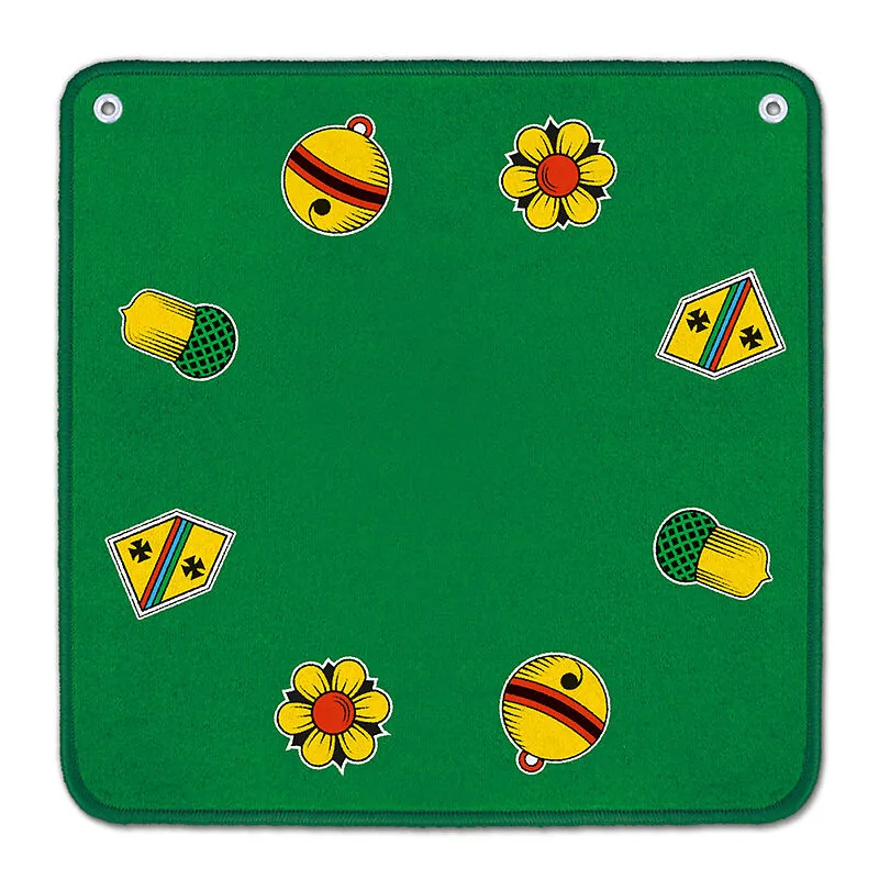 Jassteppich grün mit deutschen Jassmotiven.