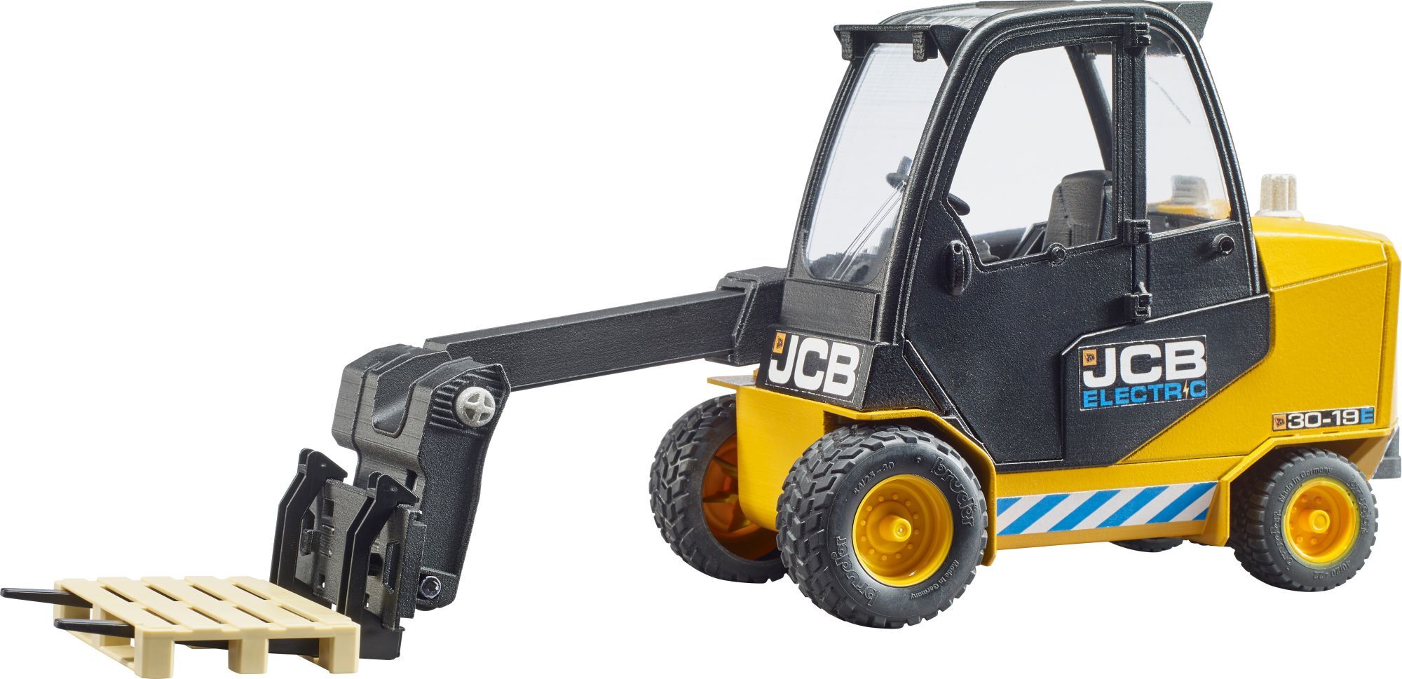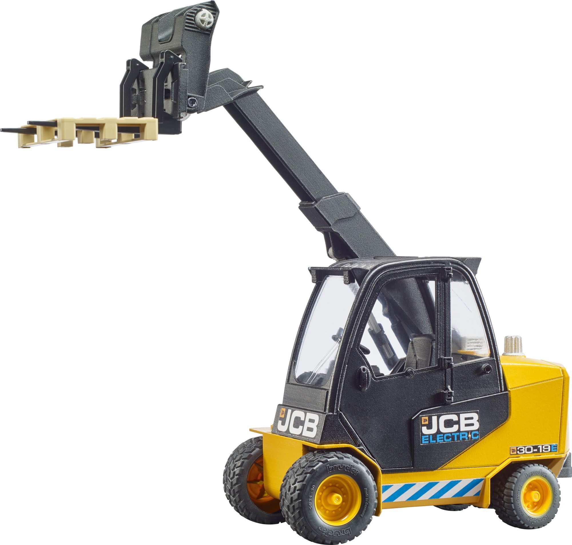 Bruder 02512 JCB Teletruk mit Palette Der elektrische JCB 30-19E Teletruk gehört zu einer neuen Generation innovativer Produkte namens JCB E-TECH mit null Emissionen am Einsatzort, ohne Kompromisse bei der Leistung. Er bringt höchste Effizienz mit einem neuart...