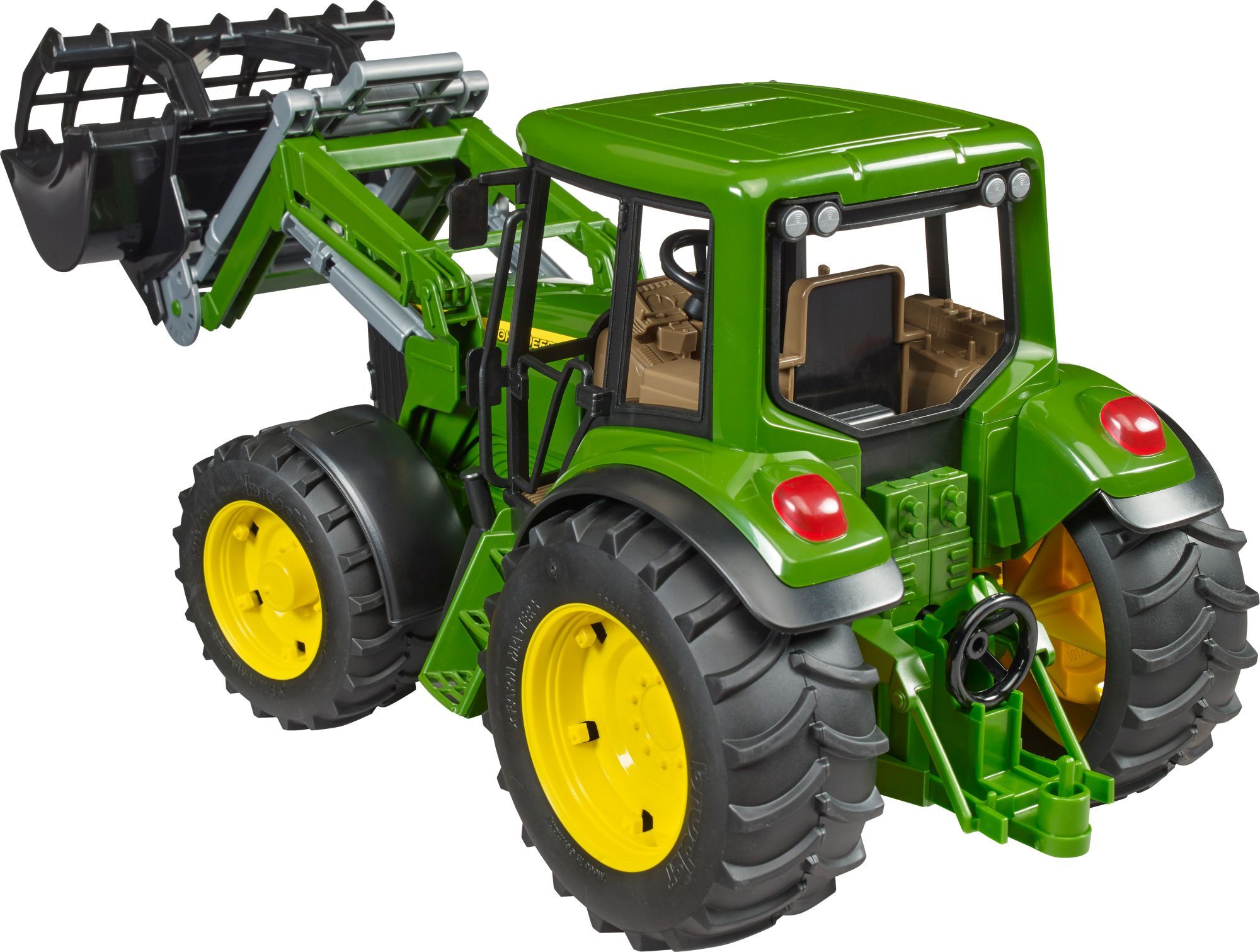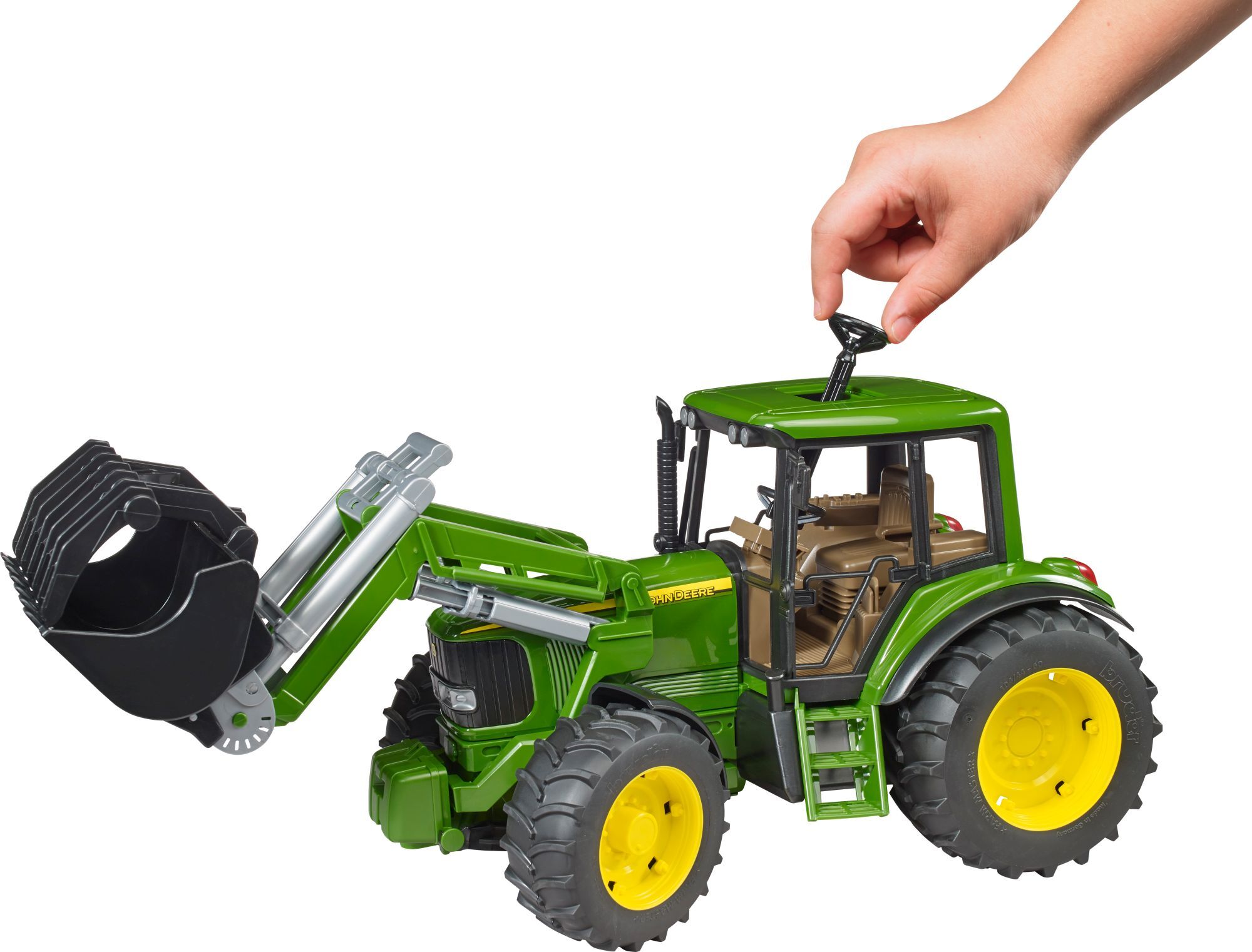 Bruder 02052 John Deere 6920 mit Frontlader Wie alle Traktoren der Profi-Serie ist auch dieser originalgetreue Traktor mit Zwillingsreifen ausrüstbar (nicht im Lieferumfang enthalten). Die Lenkung der geländegängigen Pendelvorderachse kann sowohl direkt über d...
