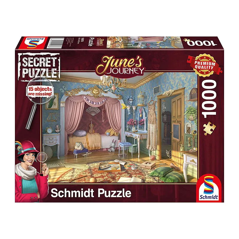 Puzzlemaße: 69,30 x 49,30 cm, 820 g 1.000 Secret Puzzle von Junes Journey Was fehlt? Aufgepasst! Covermotiv ist nicht gleich Puzzlemotiv! Findest du die 15 fehlenden Dinge? Lege das Puzzle und entdecke viele weitere Details im Bild! Mit Lösungsbogen. Wenn klei...