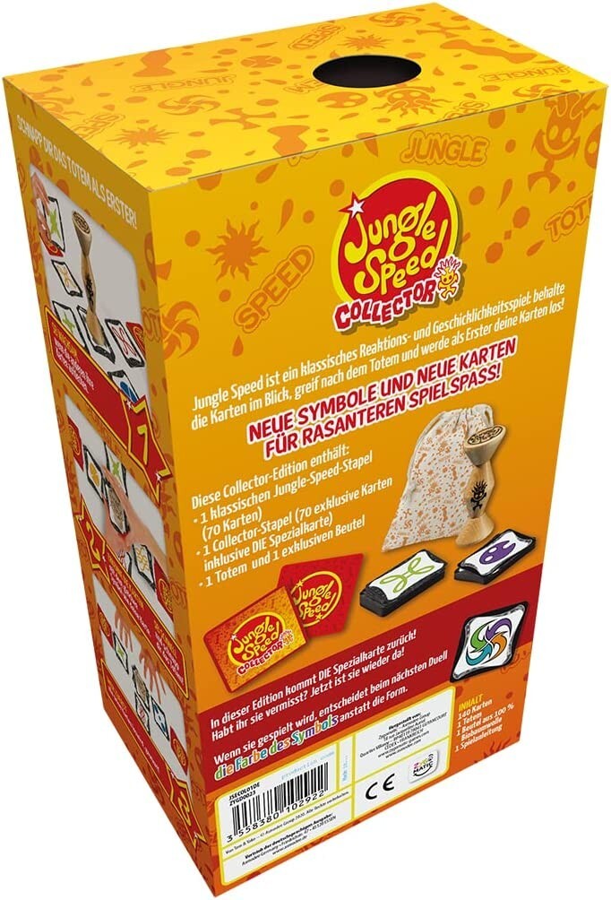 Doppelt so viele Karten, doppelt so viel Spaß! Jungle Speed Collector ist ein klassisches Reaktions- und Geschicklichkeitsspiel. Behaltet die Karten im Blick, greift nach dem Totem und versucht als Erster eure Karten loszuwerden. Die Collector-Edition enthält ...